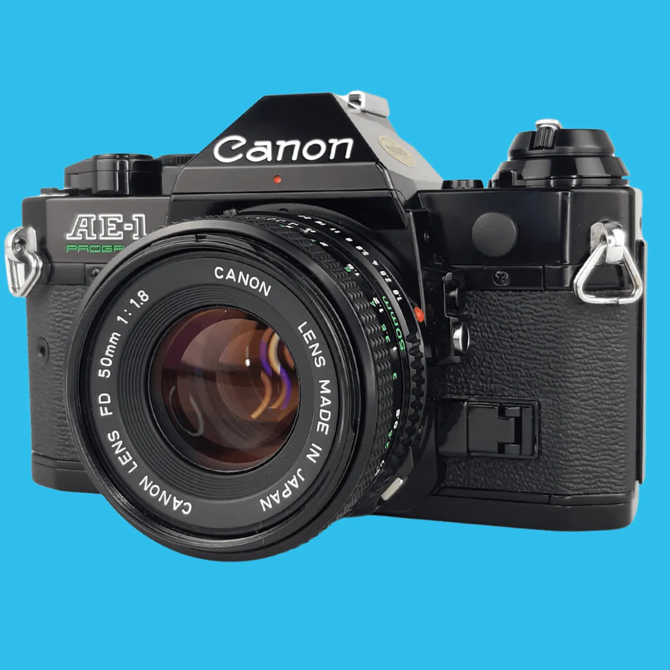 The Canon AE-1 Program is a 35mm SLR camera made by Canon in 1981. Canon describes it as a successor to the enormously successful Canon AE-1, released five years earlier. Though in some ways it is also accurate to call it a budget version of the more upmarket Canon A-1. Many users wanted an entry-level SLR with the ‘Program’ (auto exposure) mode found on the Canon A-1, whereas the earlier Canon AE-1 has only shutter-priority AE (and metered-manual exposure). For this reason, when designing its successor, Canon added a program AE mode to the specification, and the AE-1 Program became even more popular than the Canon AE-1.
