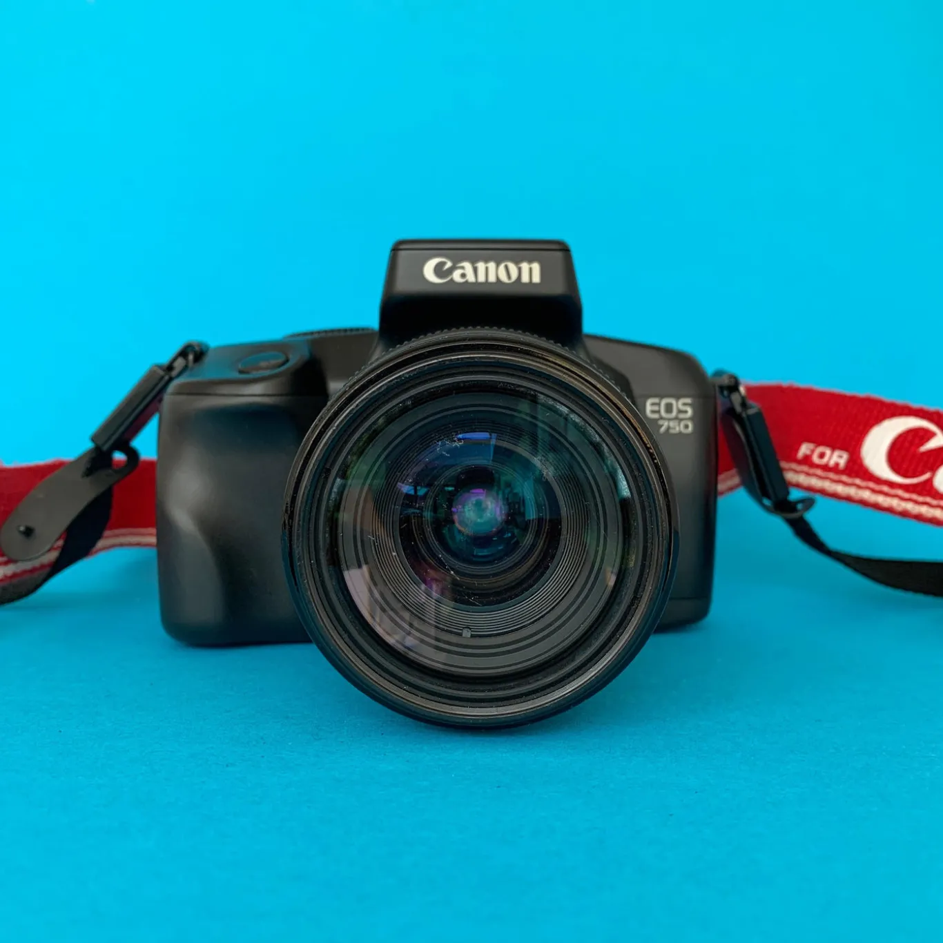 The EOS 750 and EOS 750QD are autofocus SLR for 35mm film introduced by Canon in 1988. The QD version is able to imprint dates through 2019 onto the film. Both 750’s were a very simplified EOS models, primarily meant to use programmed autoexposure, with no manual alternative.