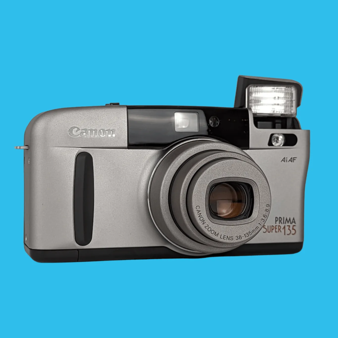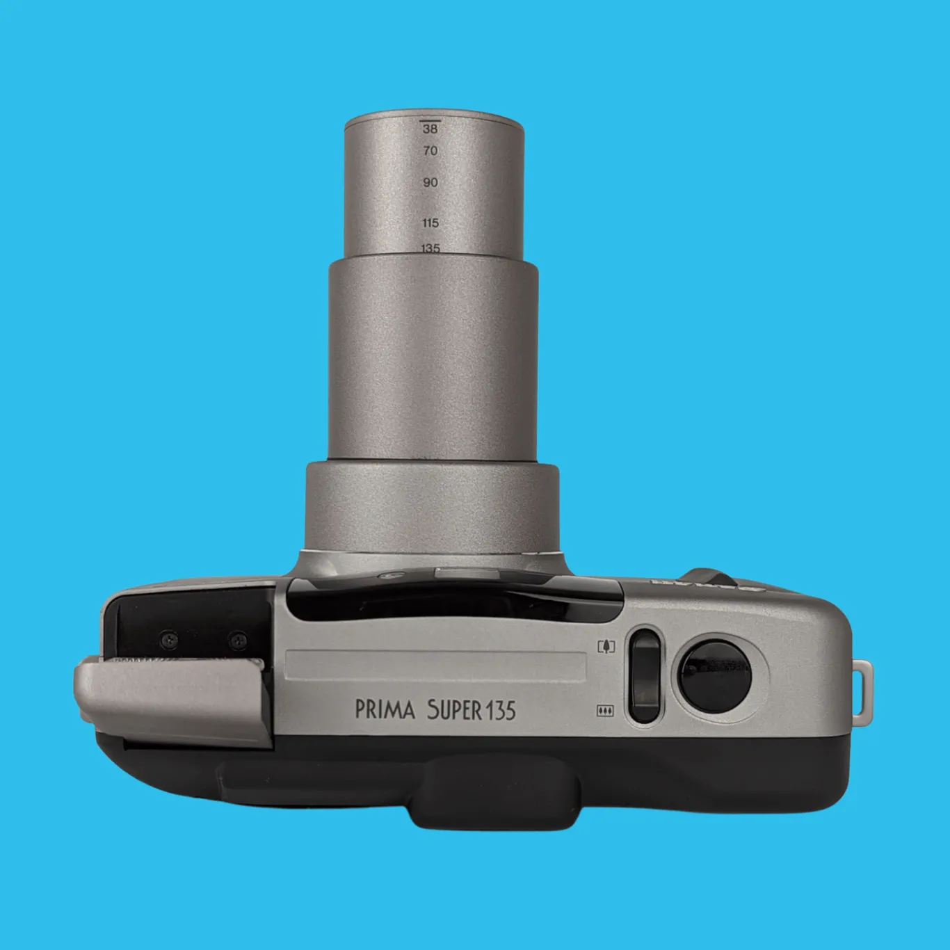 Released in 1996, the Prima Super 135 (Sureshot Z135 in America) is an advanced compact autofocus camera by Canon. It is equipped with a zoom lens with a long-range from 38 mm wide-angle to 135mm tele. It was the follow-up to the Sure Shot Z115/Prima Super 115.