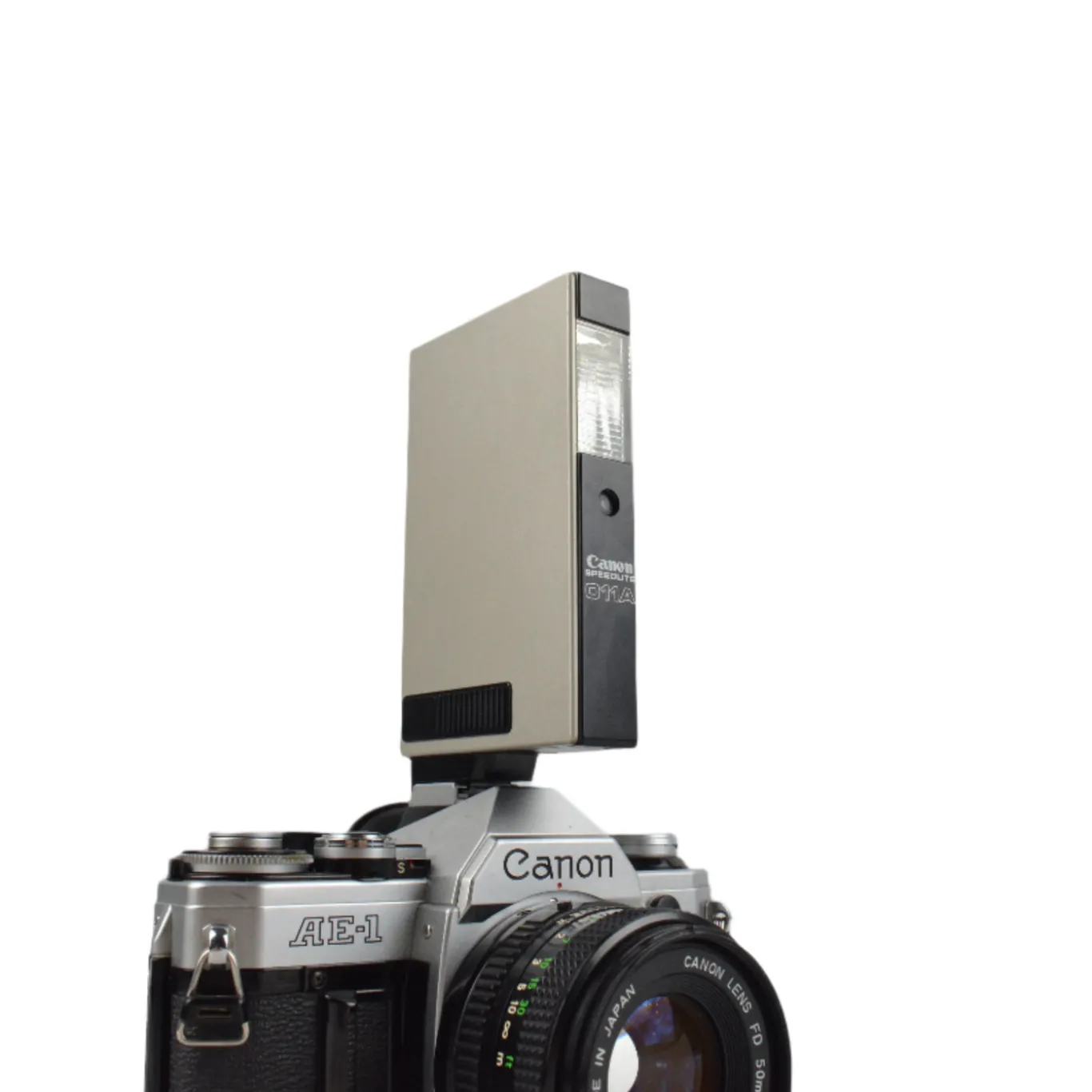 This external flash unit will work on any 35mm film camera that has a hot shoe attachment, the Canon Speedlite 011A external flash has a universal 3 pin cold shoe for attachment to hot shoes/ cold shoes with 3 pin. This super slim line, sleek flash is beautiful and compact for your every need. Designed for the Canon A series – AE-1, A1, A1 Program, AV1 etc.