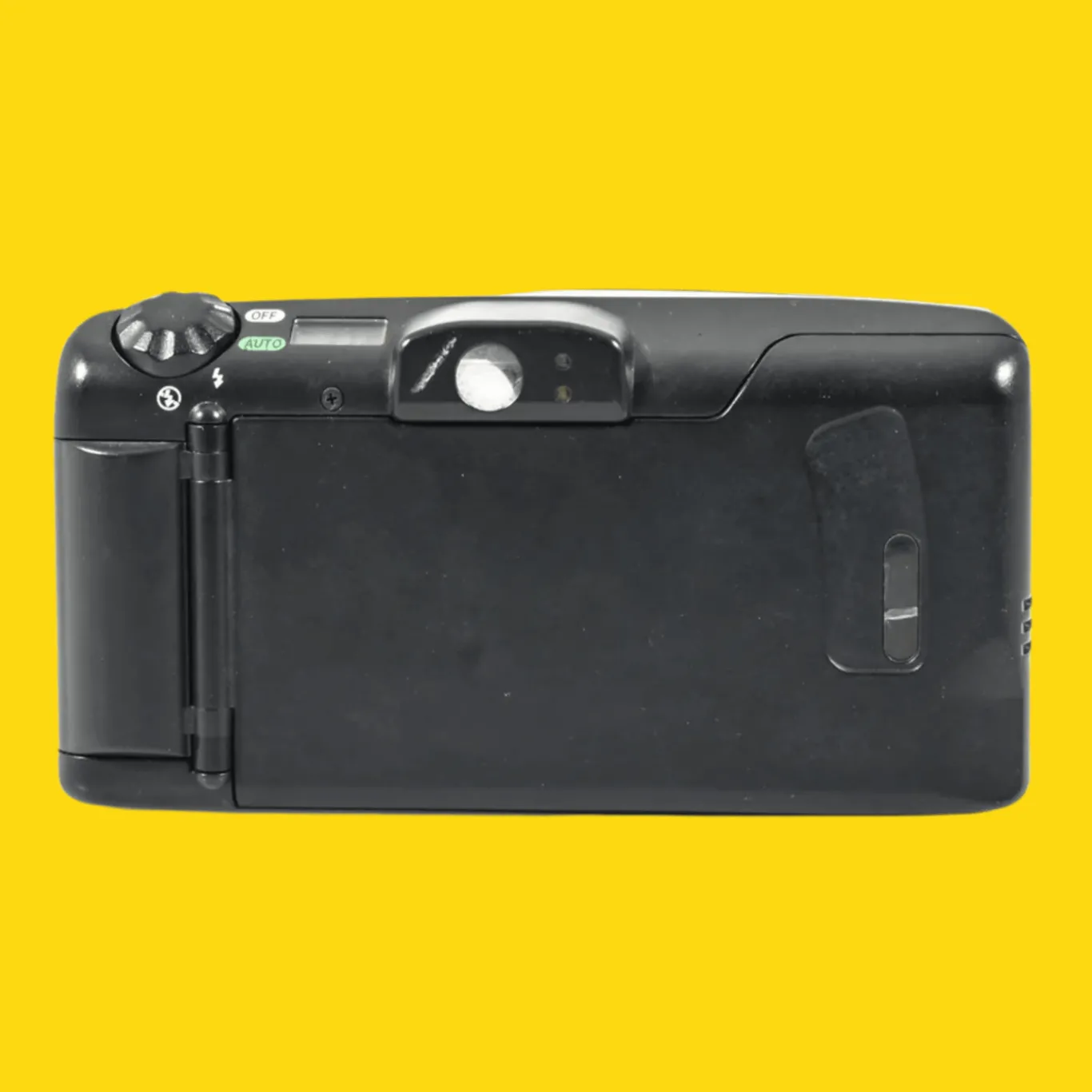 The top-of-the-line model in the Autoboy Luna series. Fully automatic zoom compact camera with a 38-105mm (2.8x zoom ratio) lens. Silver and black are two-tone colours. 3-point autofocusing with Ai-AF. Two aspherical lens elements contribute to high image quality. Easy dial operation. The RT (Real-Time) shutter mode makes shutter release very fast.