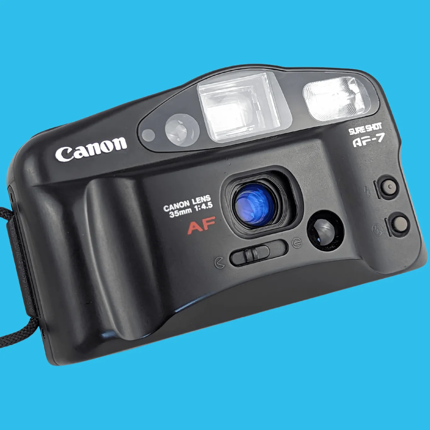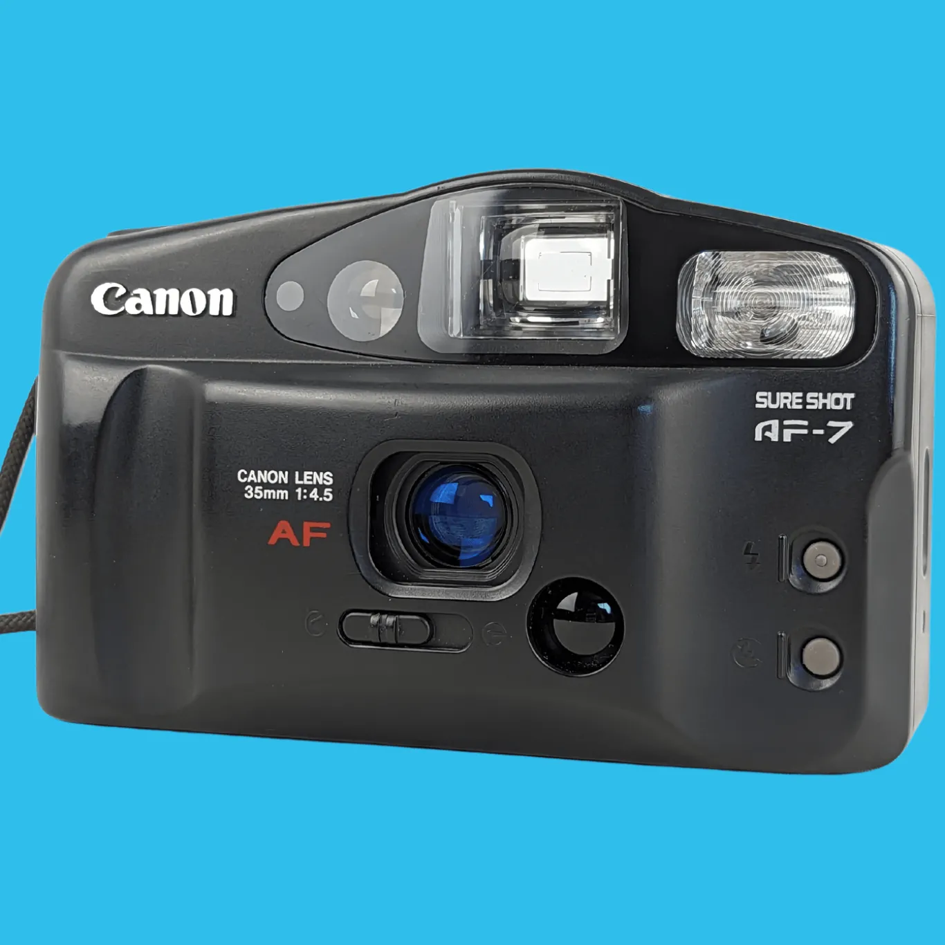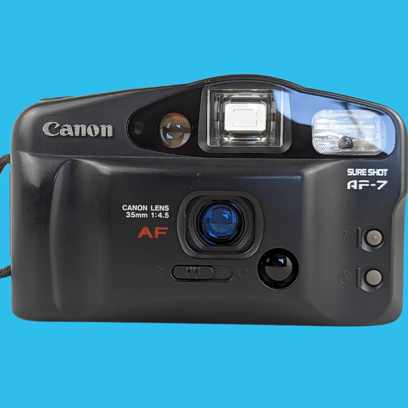 The Canon Sure Shot AF-7 was a 1990’s model from Canon’s very successful Sure Shot range. This compact 35mm film camera was known as the Prima AF-7 / Owl / BF in continental Europe. It was notable for having a large and bright viewfinder.