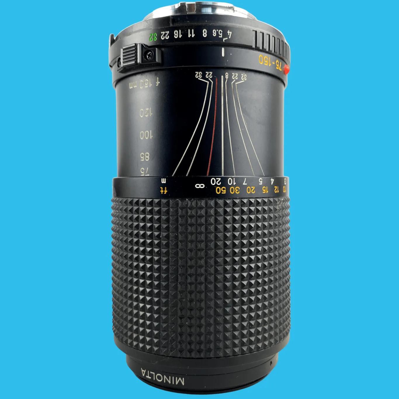 The lens elements are clear with just a few minor dust specs (no haze or fungus). The focusing operation works smoothly, plus all the apertures are selectable. This lens will fit on a Minolta with a MD mount.
