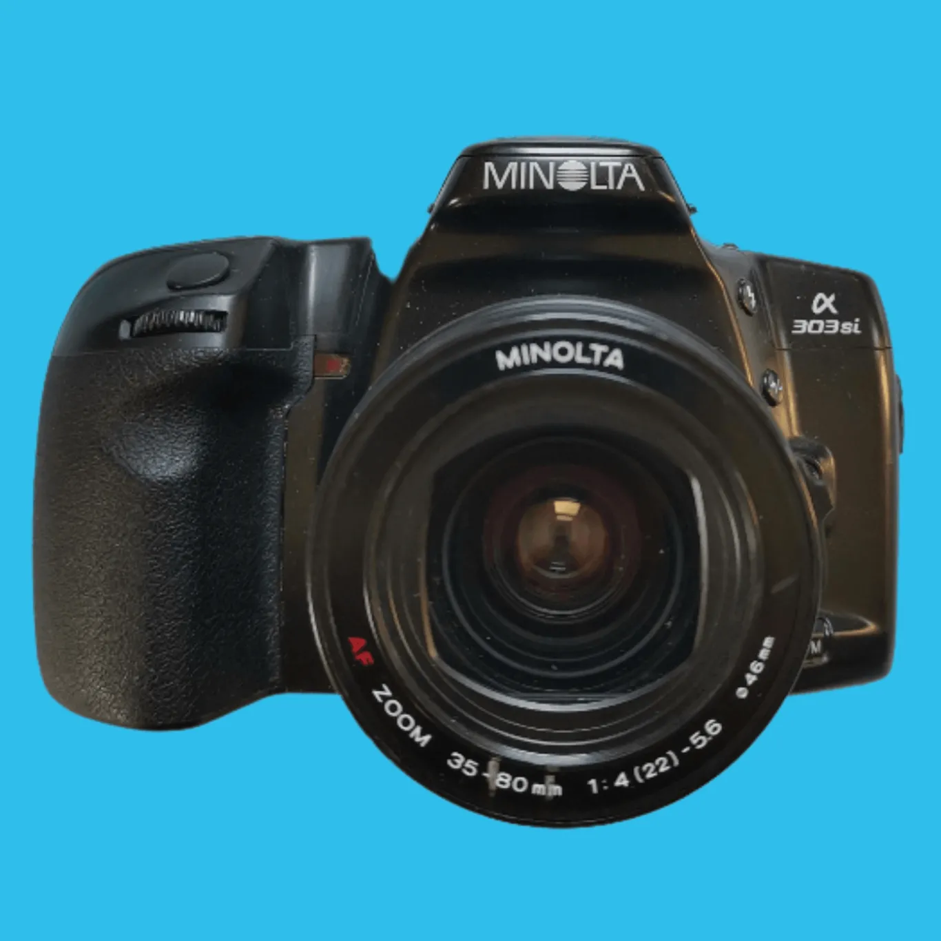 The Dynax 303si is a autofocus 35mm SLR film camera manufactured by Minolta and introduced in 1999. It is also known as the α-360si (Alpha 360si) as well as the Maxxum QTsi. This Minolta Dynax 303si has a range of auto and manual modes, as well as a wide range of creative features such as multiple exposure, spot metering, and auto bracketing. The camera is compact and lightweight, making it a great choice for photographers on the go.