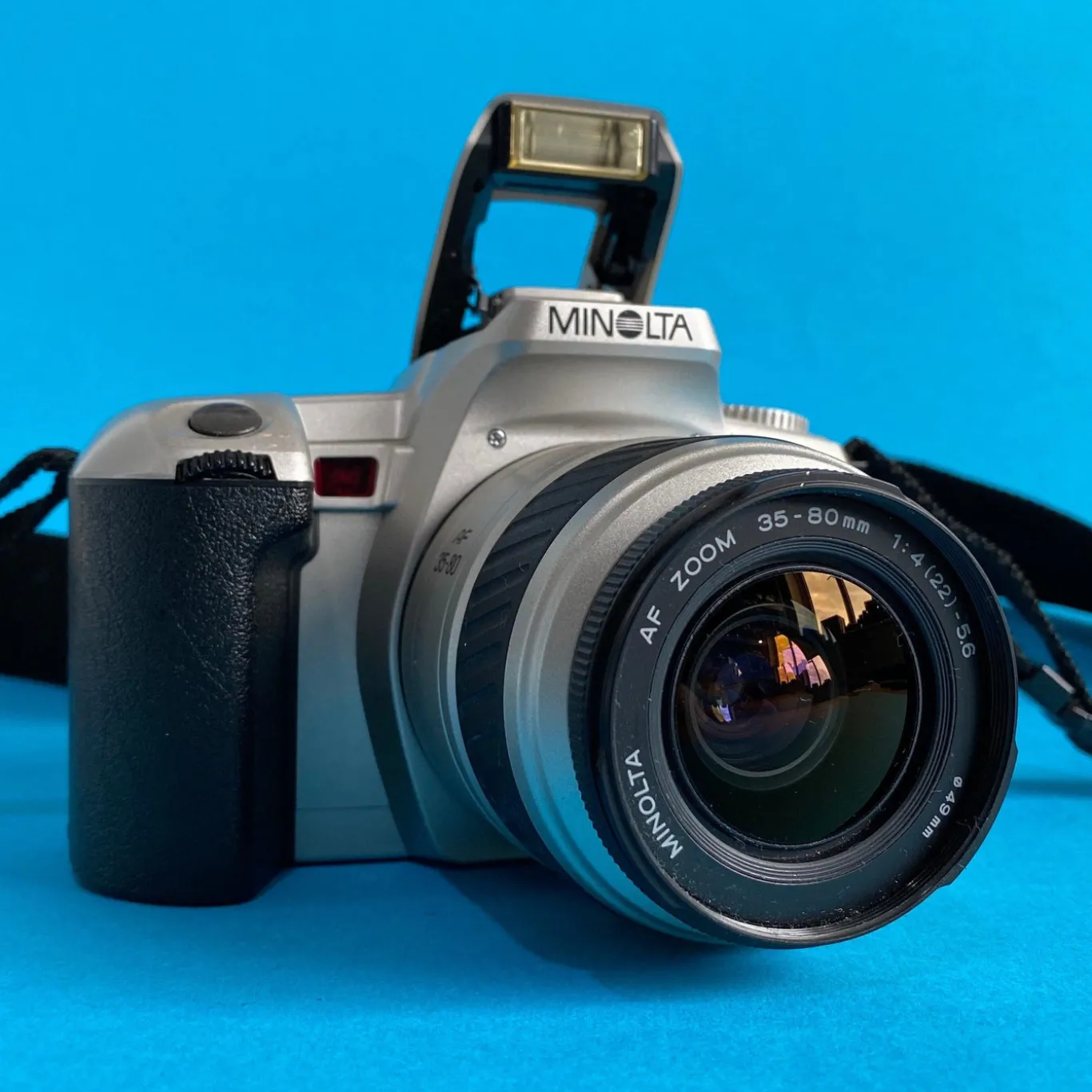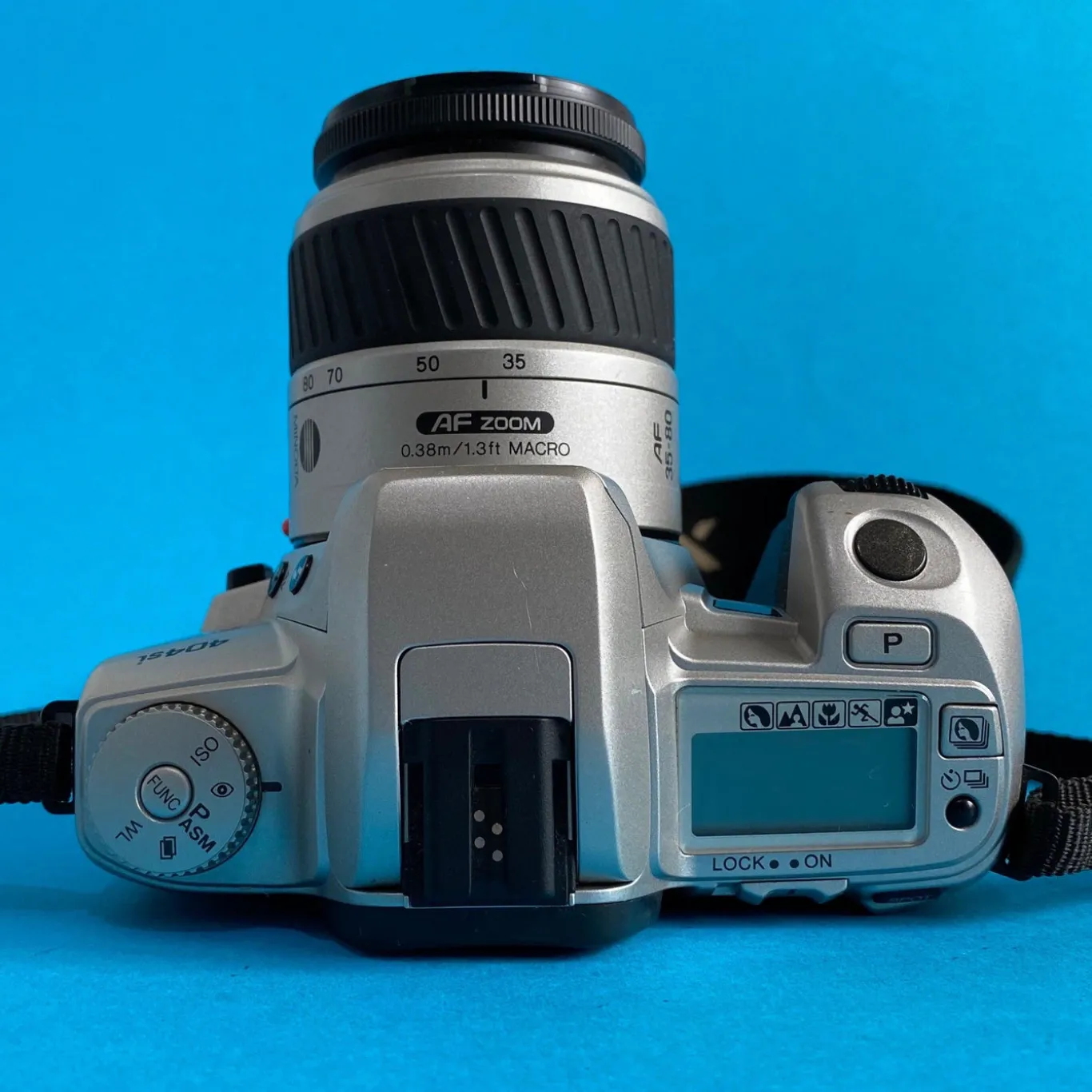 The Minolta Dynax 404si is a basic entry level 35mm SLR film camrea with auto focus and auto exposure. The Minolta introduced the Dynax 404si in the late 1990’s. This Minolta offers beginners and novices the ability to do most things a more advance photographer can achieve.