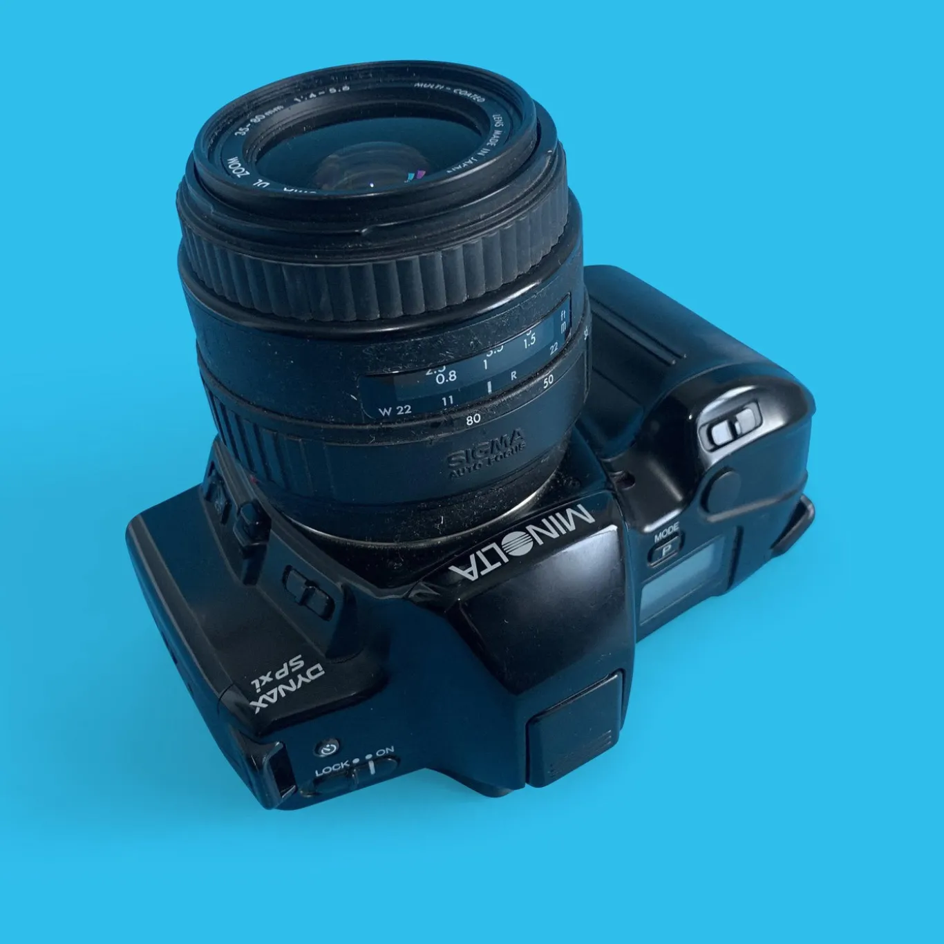 The Minolta Dynax SPxi is a autofocus 35mm film SLR. It was Minolta’s cheapest system camera with mode for automatic choice of focal length. It belonged to Minolta’s third series of cameras with Minolta AF mount. Of course the new feature worked only with the ZOOM xi lenses which had motorized zoom setting.