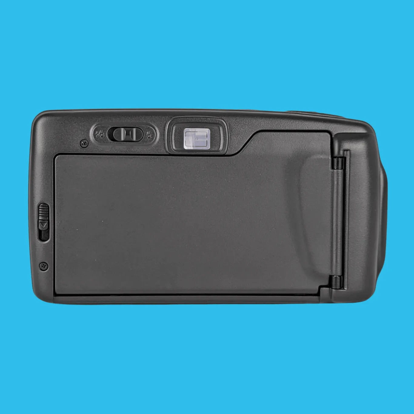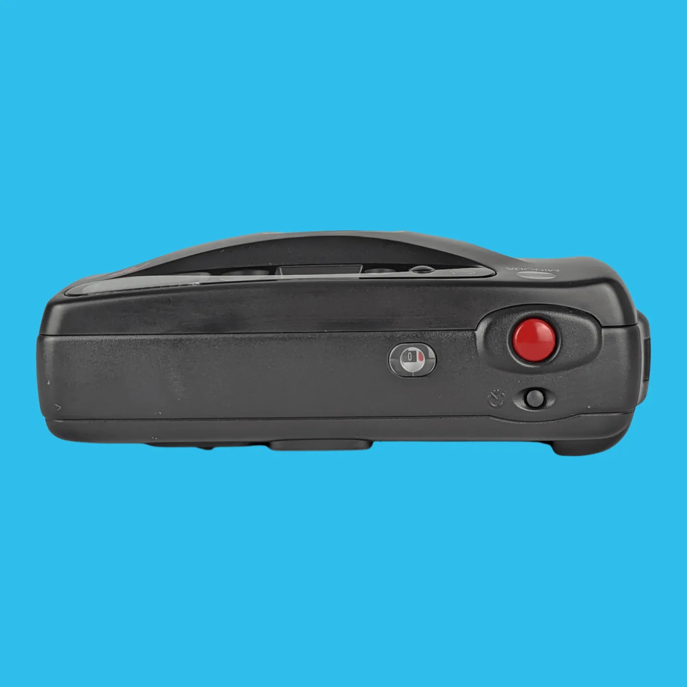 This vintage film camera is ideal for beginners, amateurs and professionals. It’s in excellent condition and is ready to produce another lifetime of fantastic photos. It is a full-auto camera, meaning auto-loading, auto-advance, auto-rewind, auto-flash, auto-exposure and auto-focus. It has a built-in flash and self-timer. The lens is protected by a sliding cover.