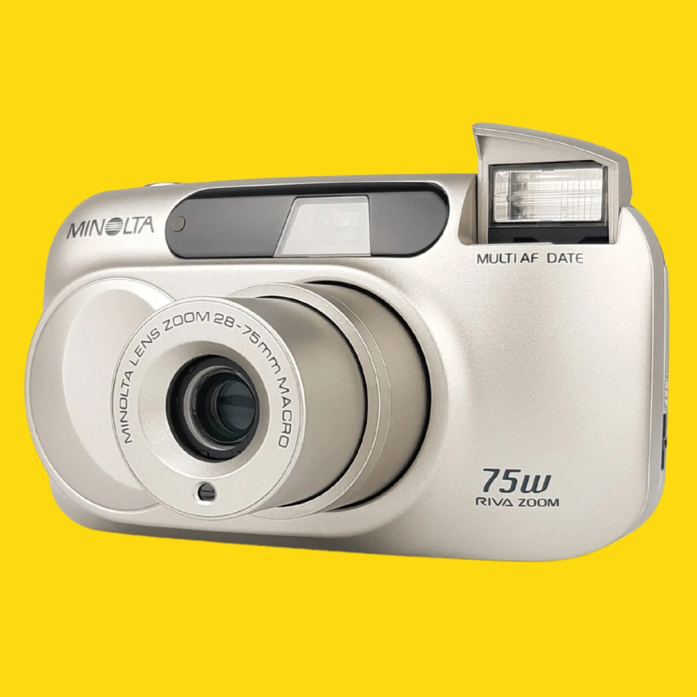 The Riva Zoom 75w (also known as the Freedom Zoom Explorer EX) is a fully automatic compact camera with a zoom lens and built-in pop-up flash. It was a minor upgrade from the very similar Riva Zoom 70W with a slightly longer focal range. Exposure control, focusing and film transport is fully automatic.