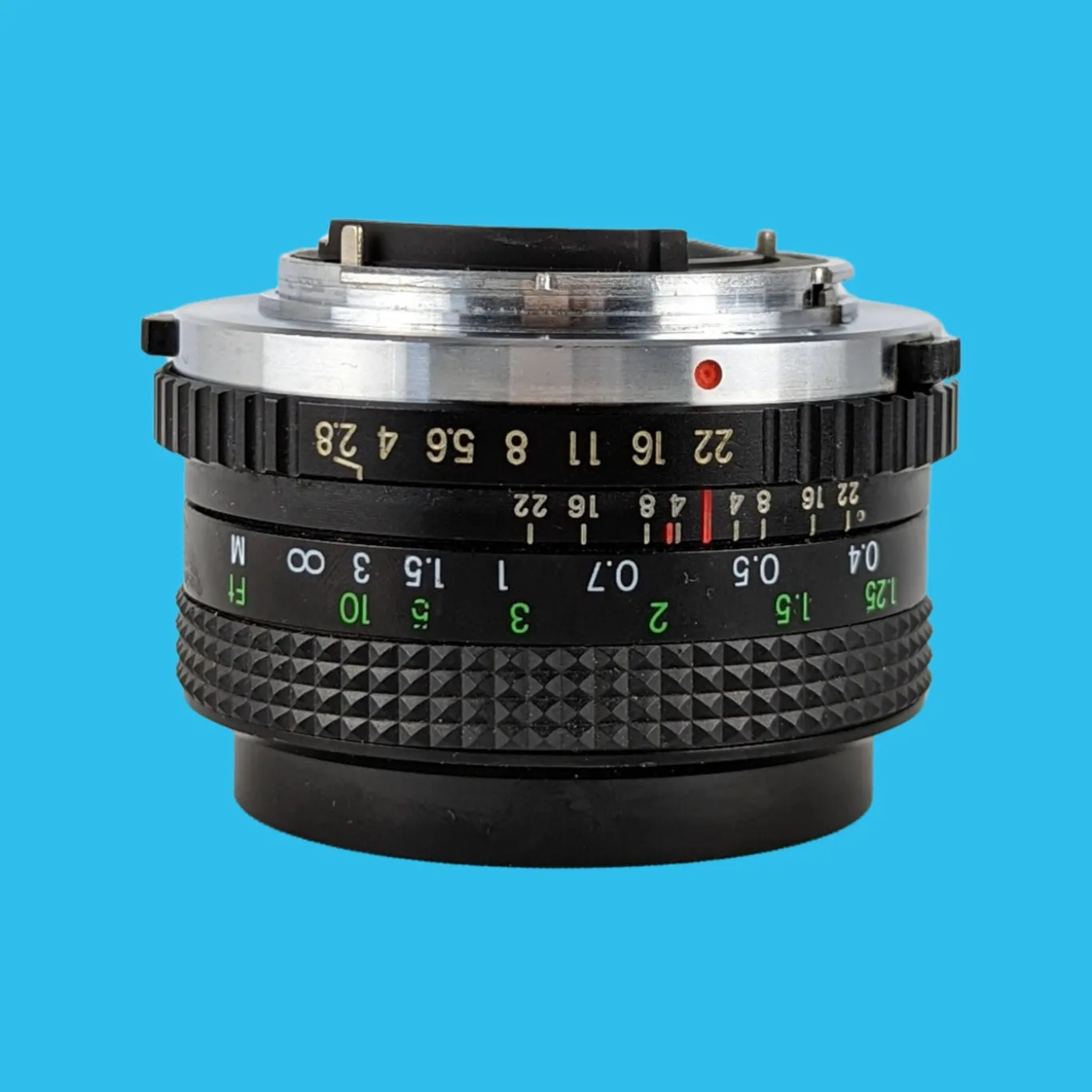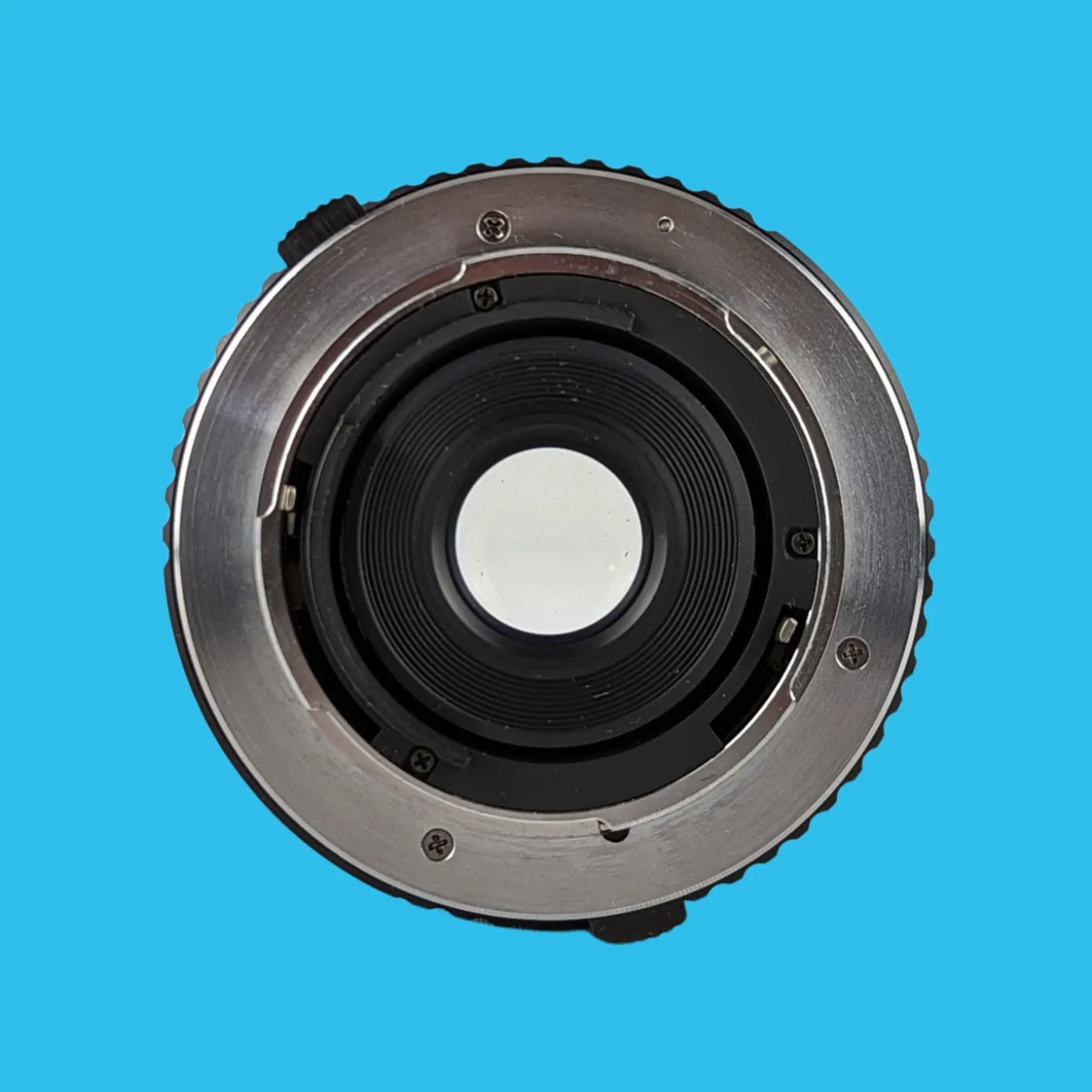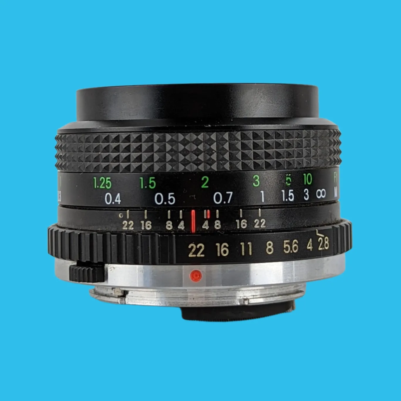 The lens elements are clear with just a few minor dust specs (no haze or fungus). The focusing operation works smoothly, plus all the apertures are selectable. This lens will fit on an Olympus with an OM mount