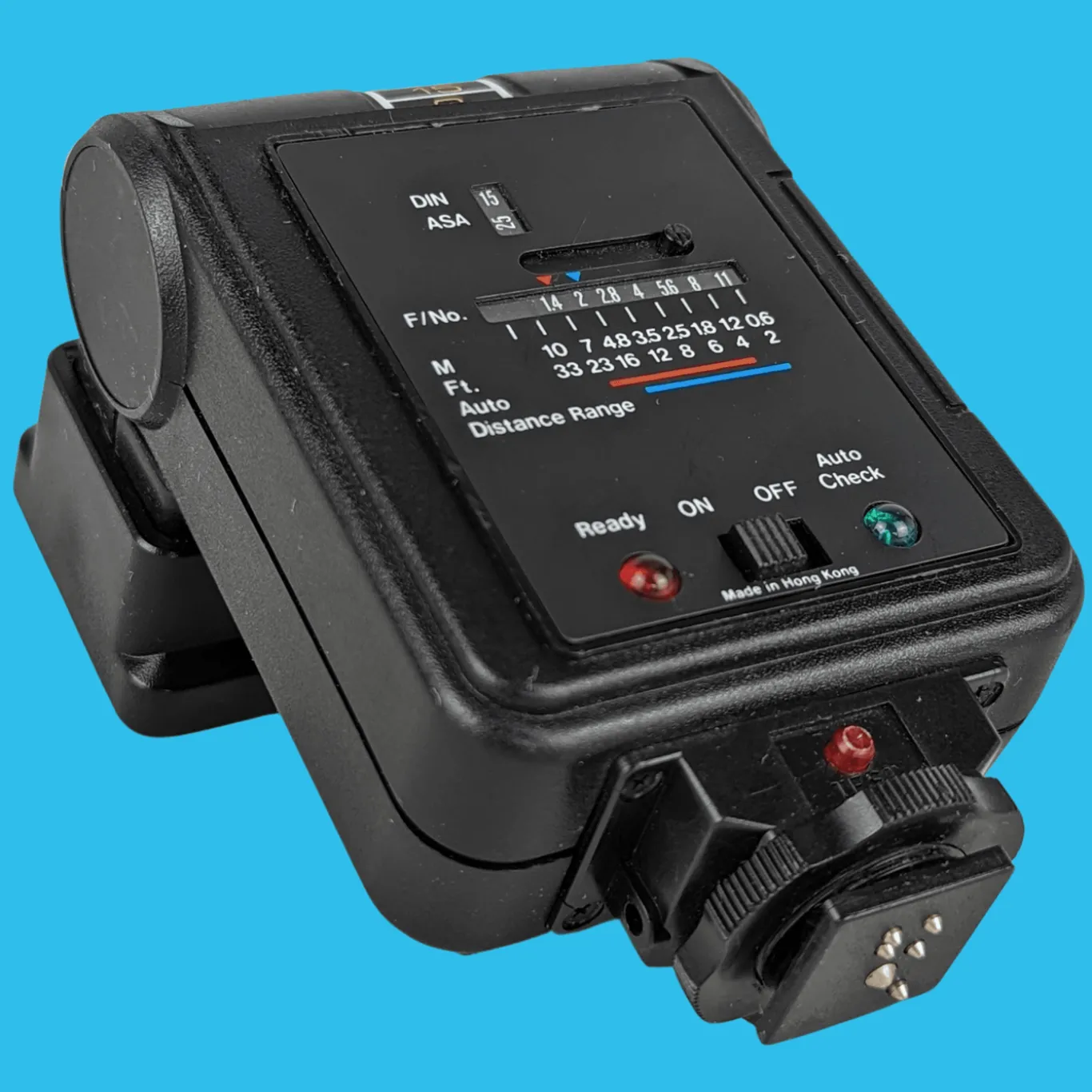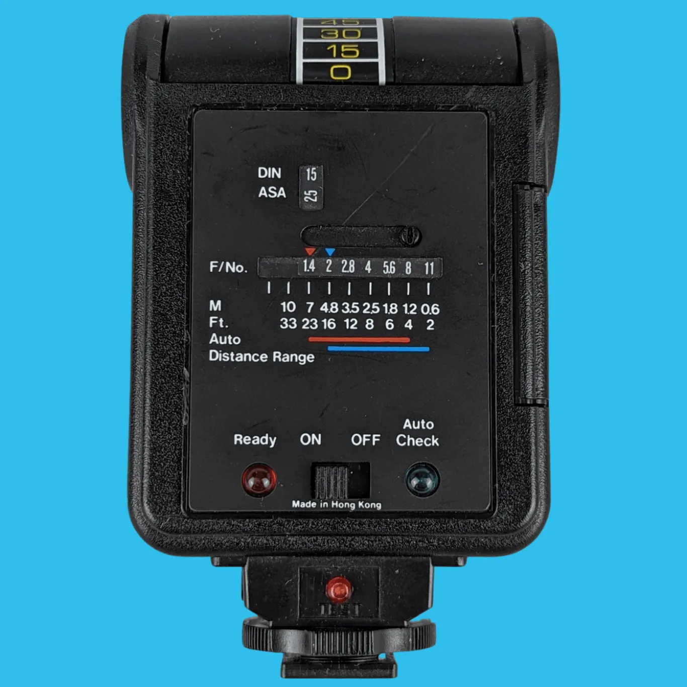 This model includes a test button where you can test the flash before putting it on your camera. (ALWAYS point the flash away from you to avoid your eyes!)