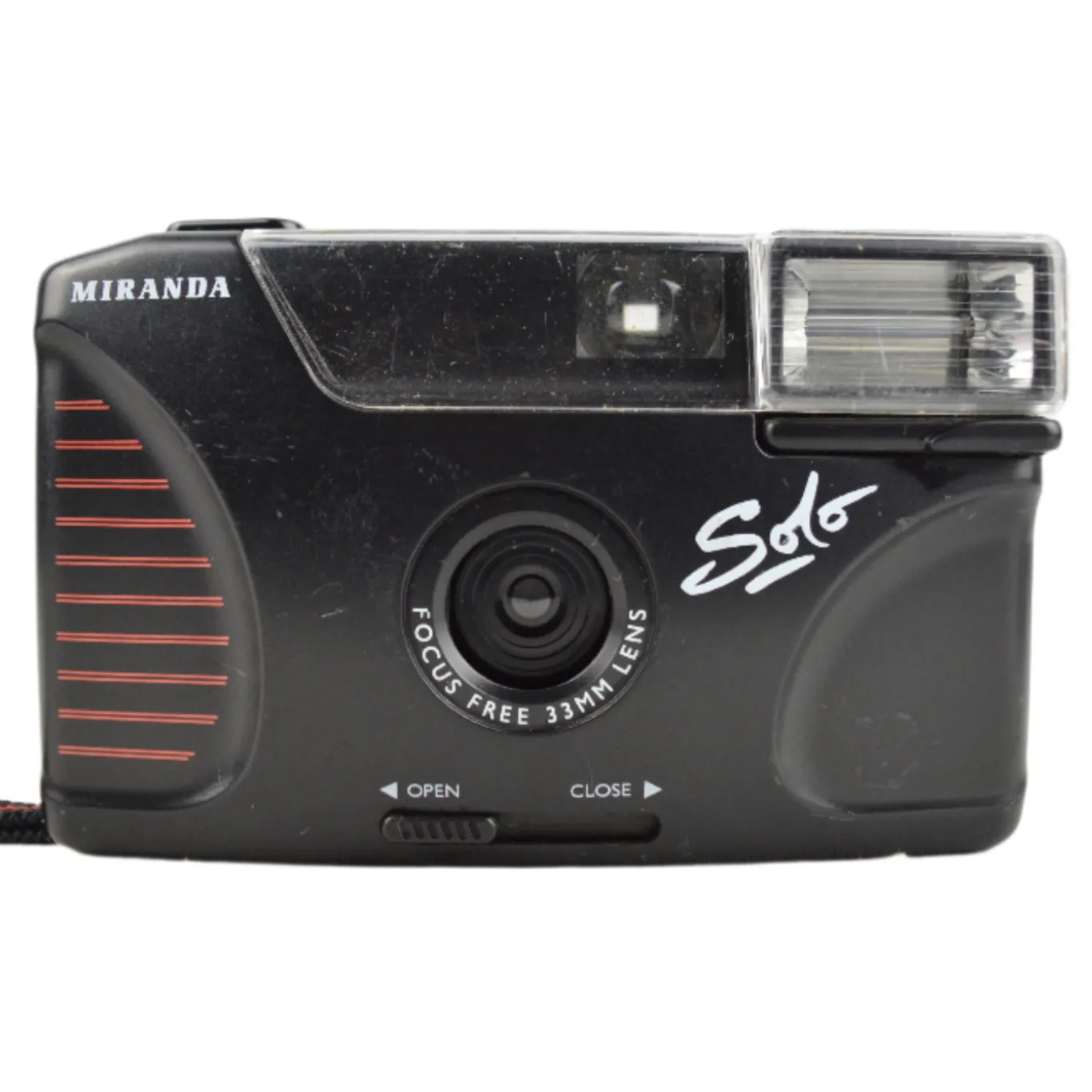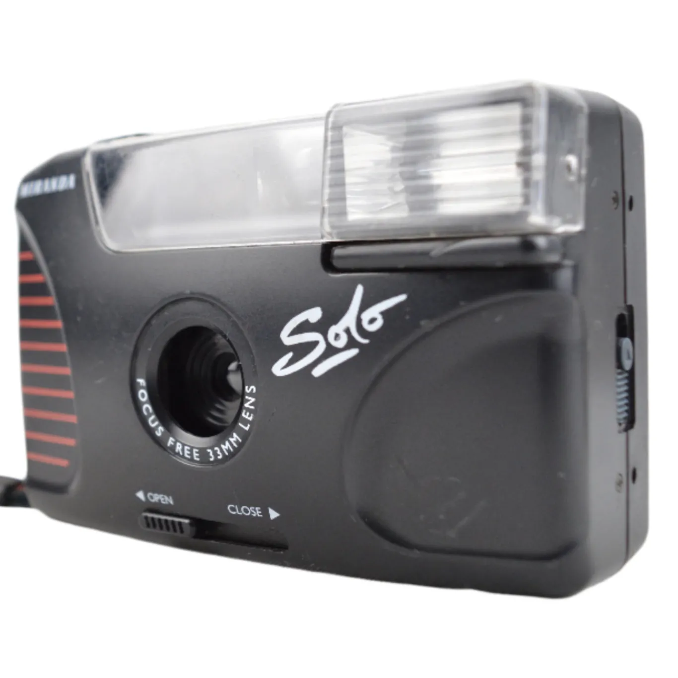 The Miranda Solo is a compact 35 mm point and shoot film camera with a fixed focus 33 mm f5.6 lens. Designed for simplicity it uses a fixed shutter speed around 1/100 second and offers automatic exposure control making it effortless to use in daylight. Film is advanced and rewound manually and no battery power is needed unless using an external flash.