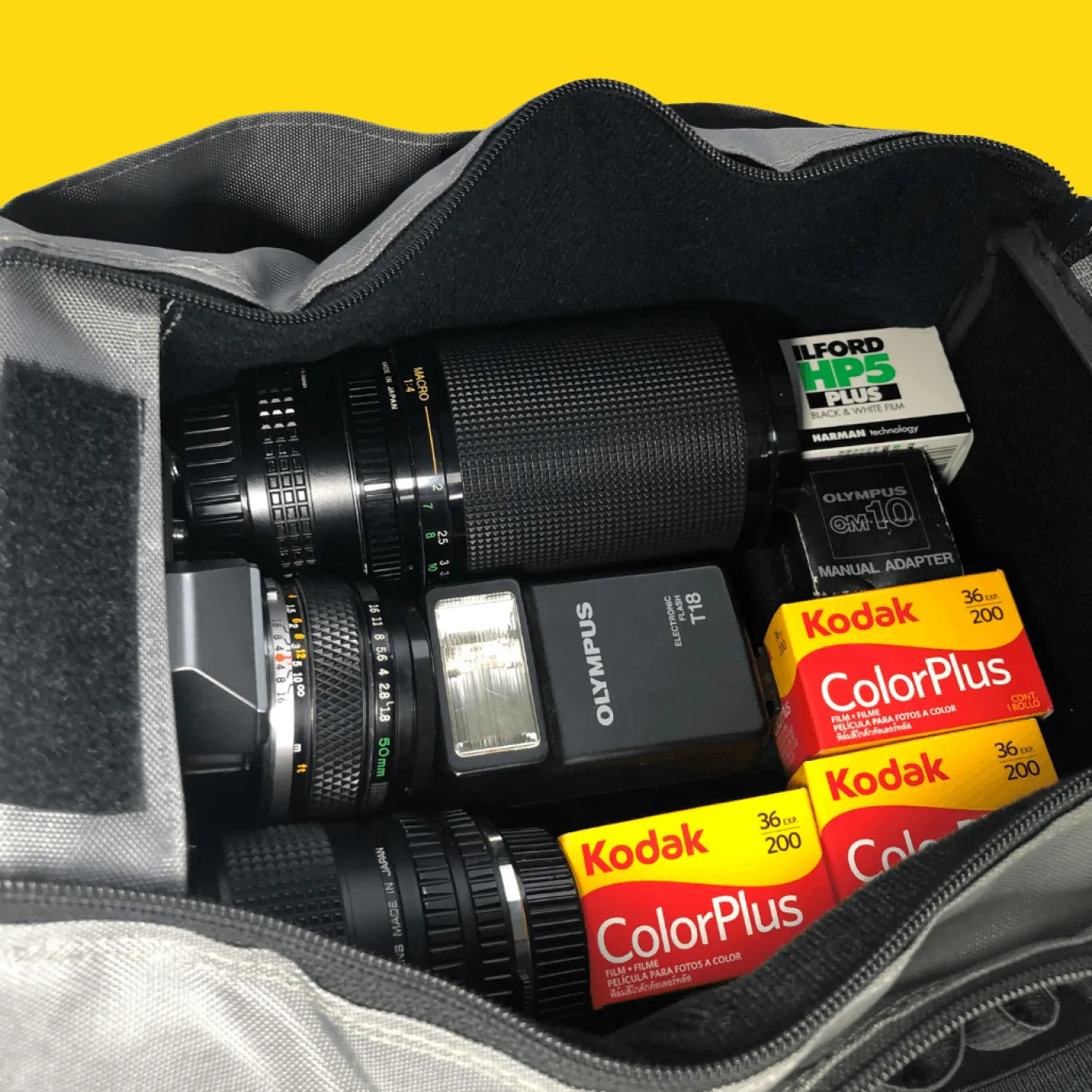 - All small accessories (rolls of film, cleaning kit, lens filter and caps)