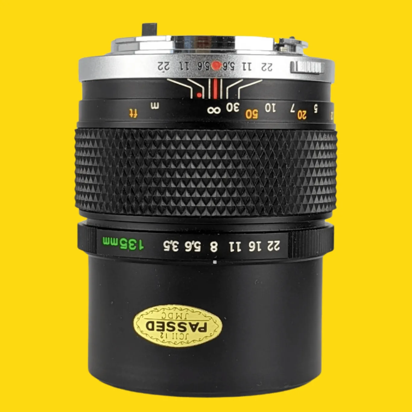 The lens elements are clear with just a few minor dust specs (no haze or fungus). The focusing operation works smoothly, plus all the apertures are selectable. This lens will fit on a Olympus SLR camera.