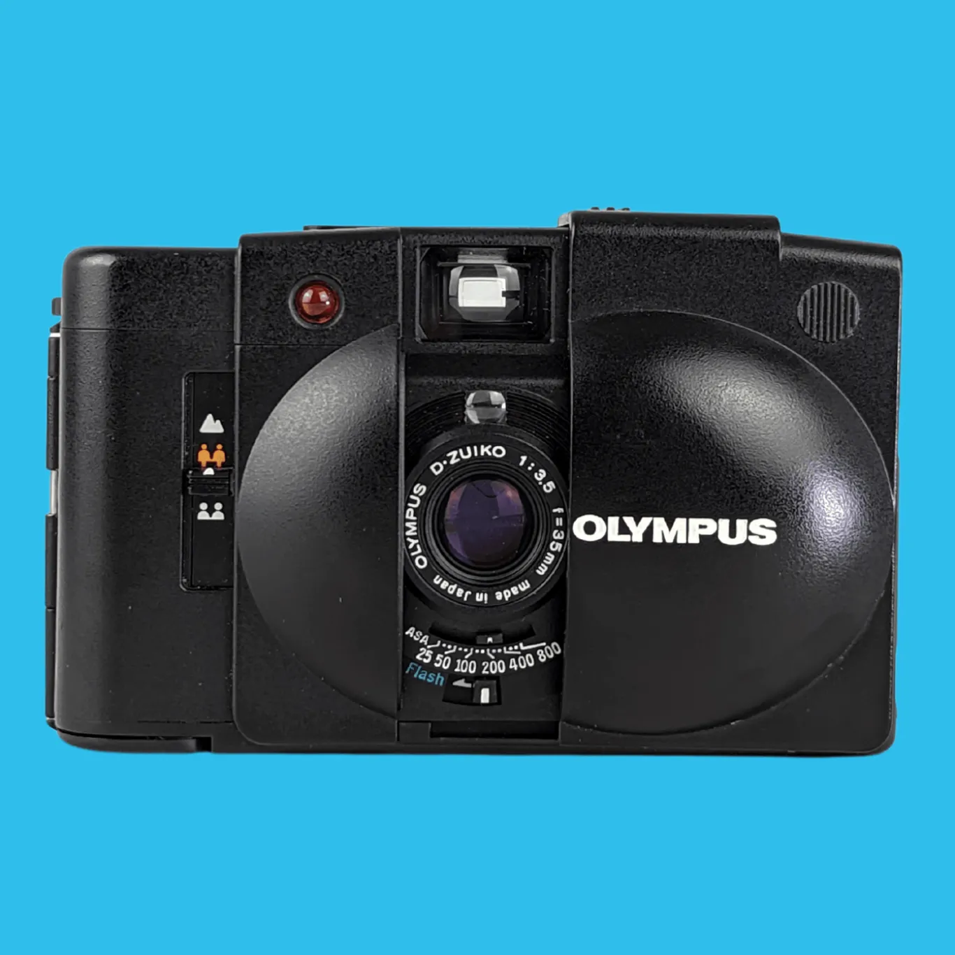 The XA2, introduced in 1980, was a simplified version of the XA with zone focusing and a programmed exposure system. The exposure meter was a CdS exposure sensor above the lens. The shutter speed range was 2 secs. to 1/750. The minimum focusing distance was 3 feet or 0.9 meters. Its film speed range was ASA 25-800.