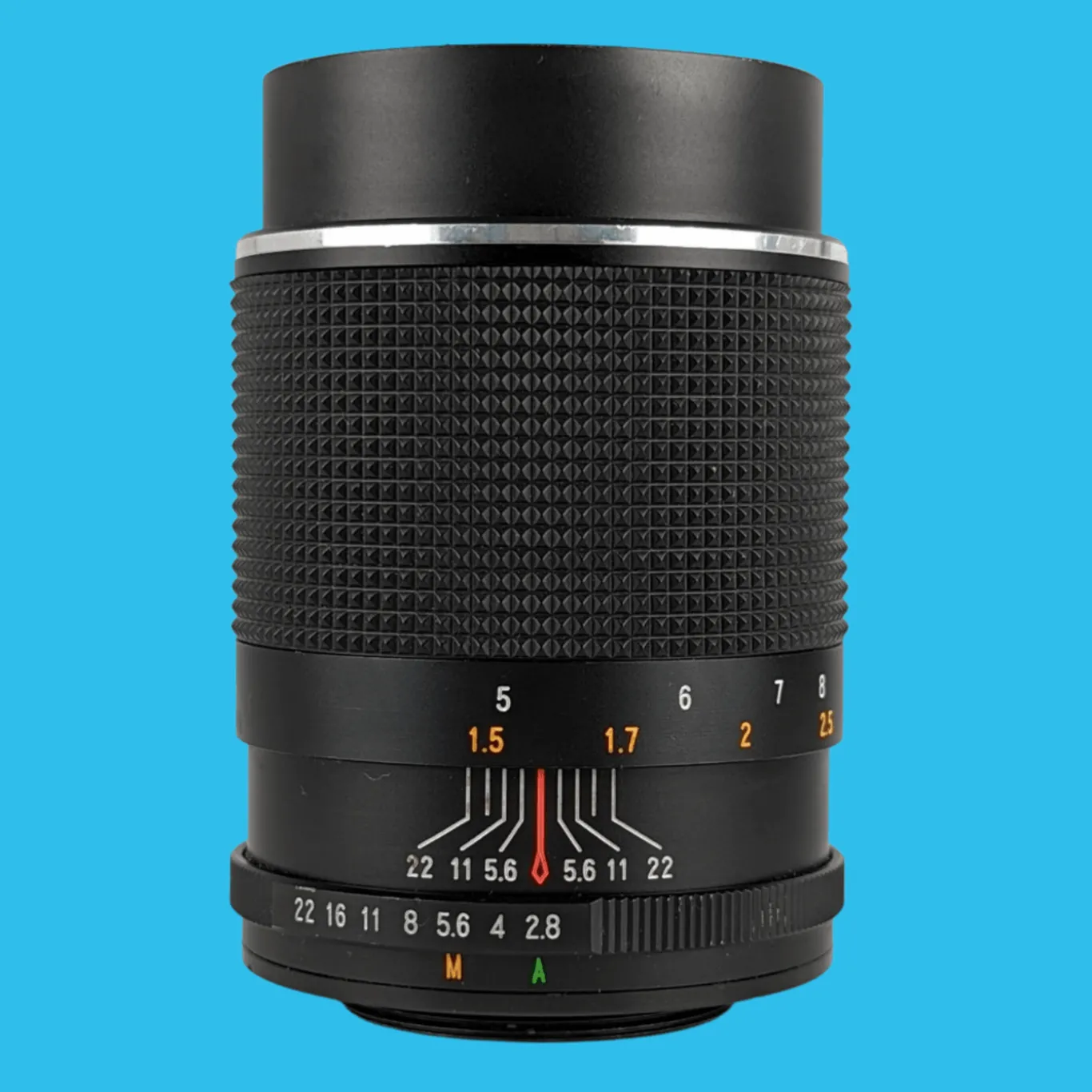 - Aperture: f/2.8-22, single stop clicks