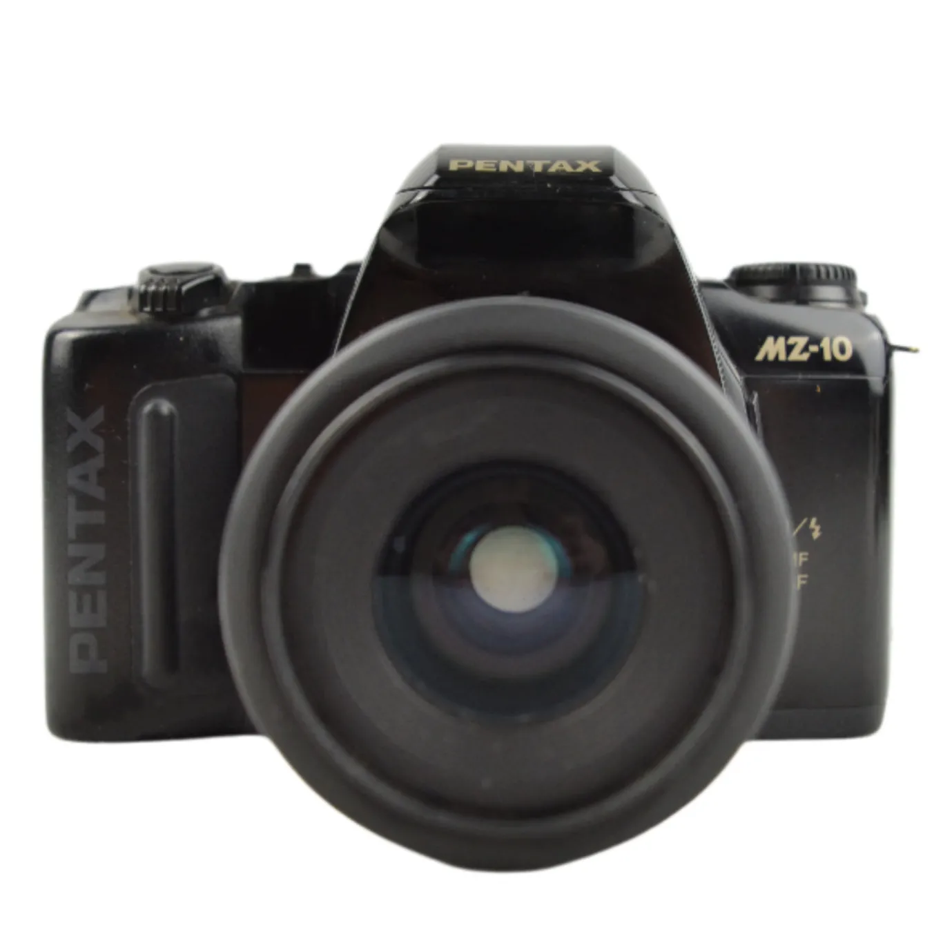 The Pentax MZ‑10 (also sold as the ZX‑10 in the USA) is a compact autofocus 35 mm SLR first introduced in 1996. Paired here with a versatile 35‑80 mm f/4 zoom lens, it offers a range from moderate wide-angle to short telephoto. The camera provides fully automatic shooting with Smart Picture scene modes (portrait, landscape, action, close-up, green), plus aperture-priority, shutter-priority, program, manual, and bulb modes. Featuring motorized film advance and rewind, a built-in TTL flash, DX ISO detection, and exposure compensation, the MZ‑10 balances flexibility with user-friendliness.