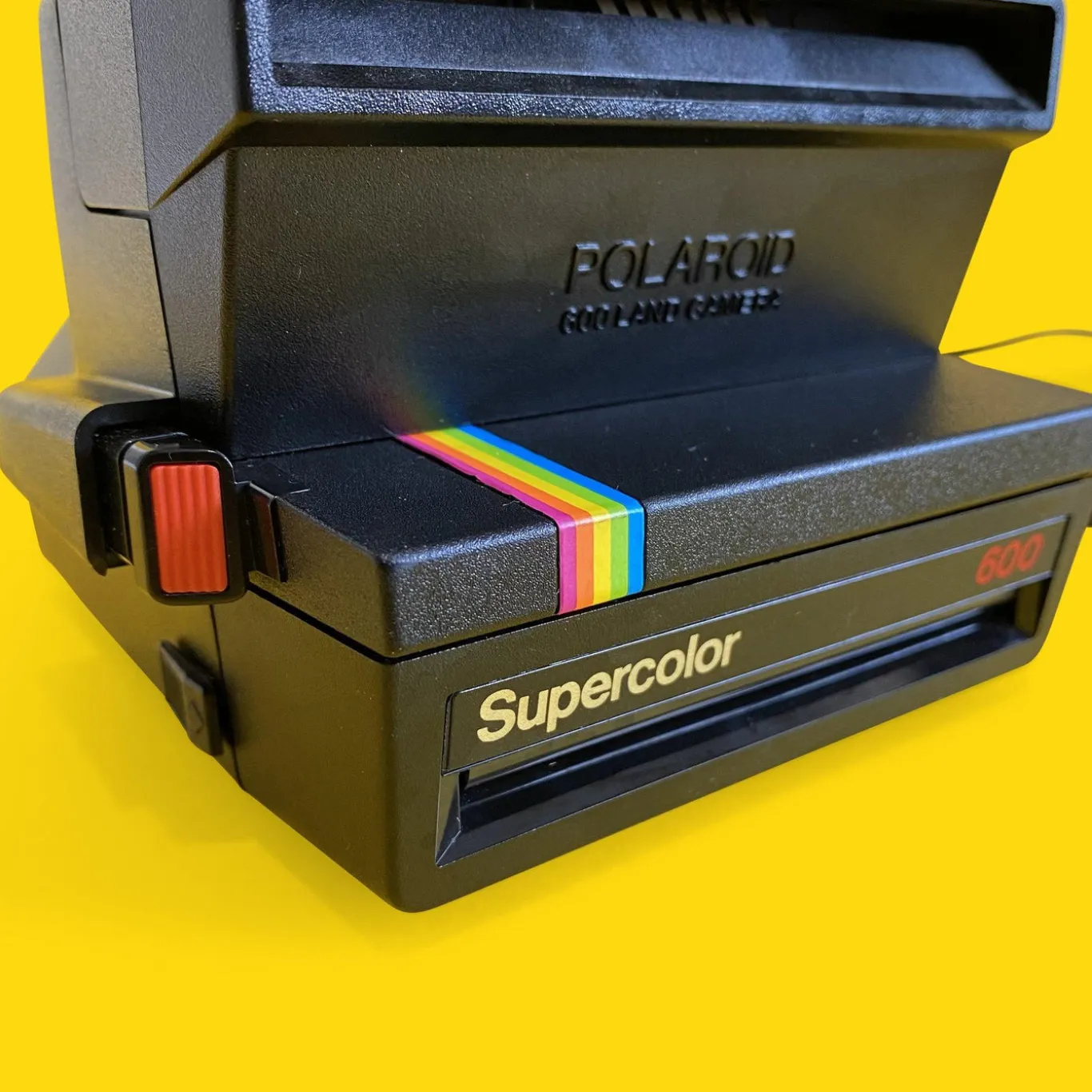 Meet the Polaroid Supercolour 600, a stunning vintage-looking instant film camera that will produce authentic vintage photos! This particular model is compact and lightweight ideal for traveling, autofocus lens with close-up and infinity modes! The hand strap also makes this camera super comfortable to hold!