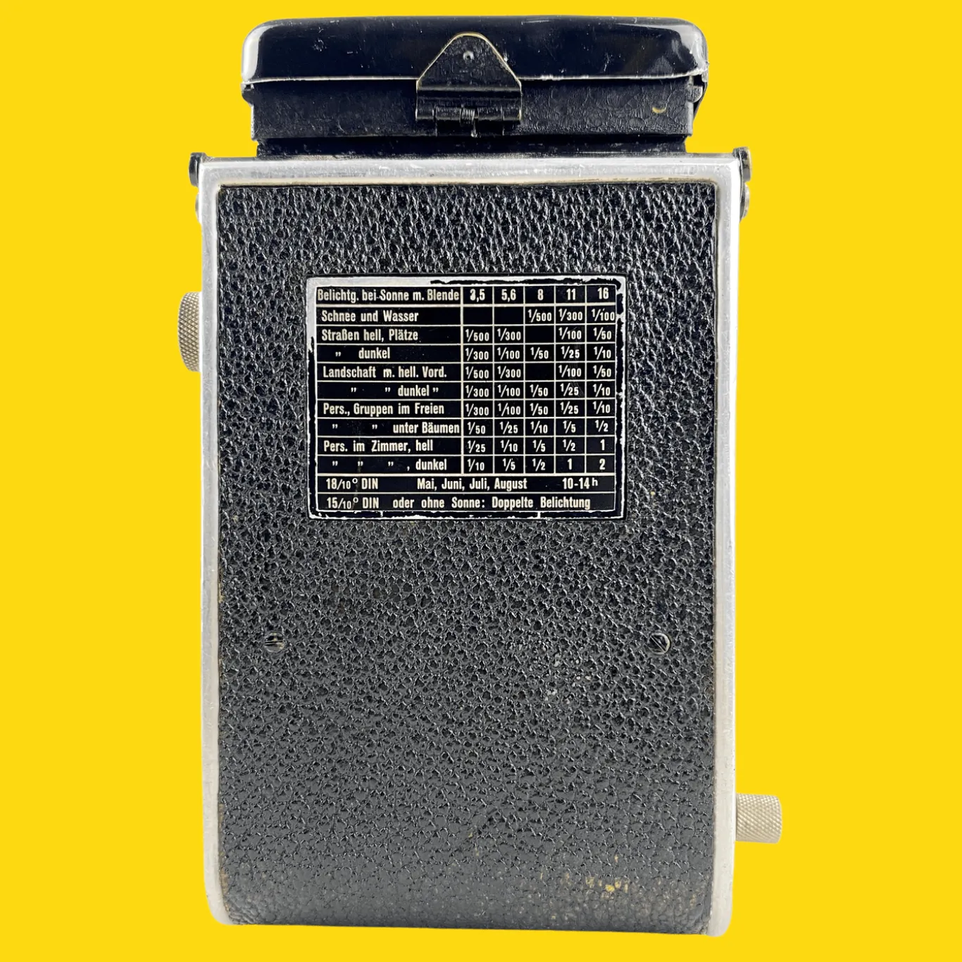 The Rollieflex Old Standard is a medium format TLR camera that produces 12 square 6X6 negatives on 120 film. A Twin Lens Reflex camera is a camera that boasts two lenses, a viewing or focusing lens and a secondary photographic lens or “taking lens.