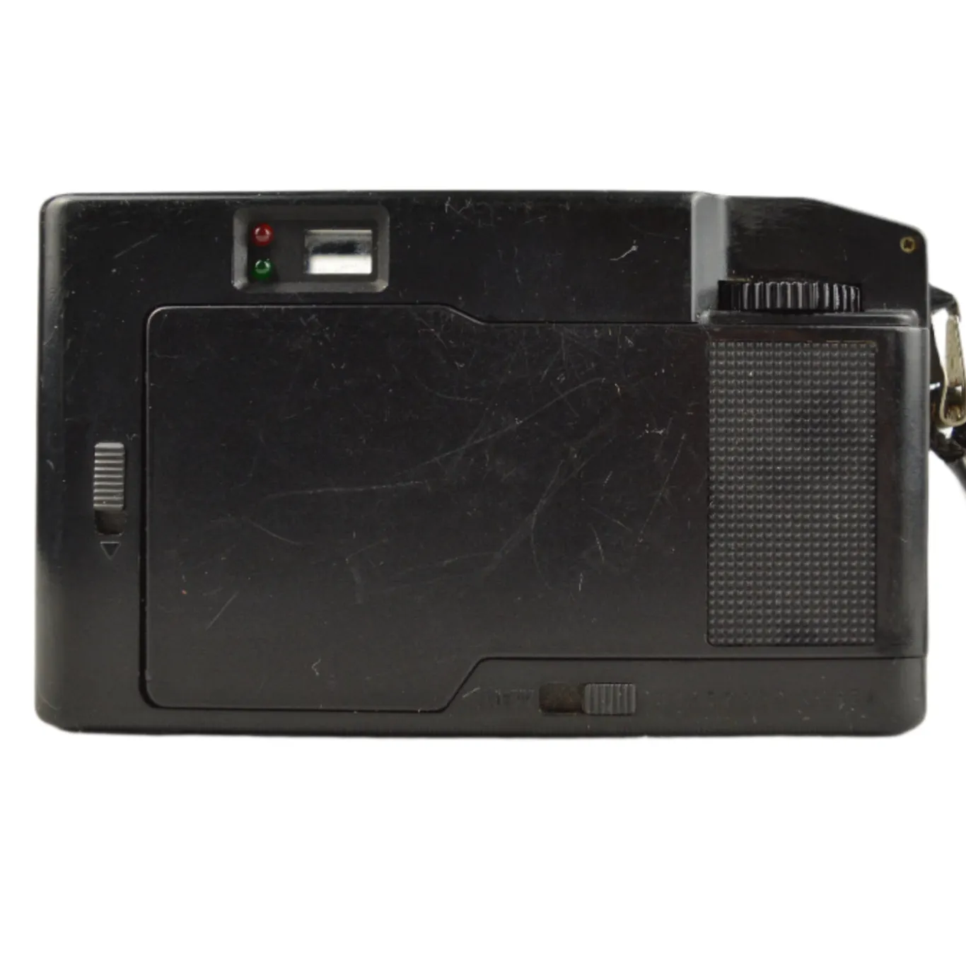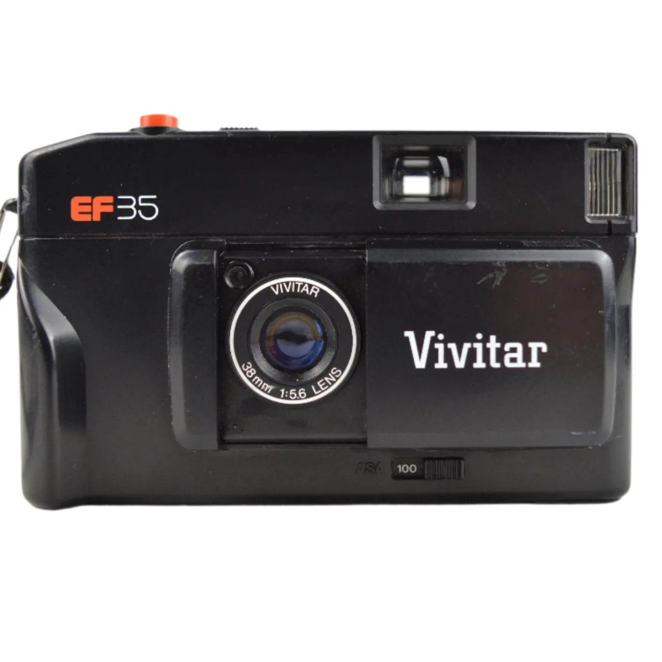 The Vivitar EF35 is a minimalist 35 mm point and shoot film camera featuring a fixed focus 38 mm f 5.6 lens. This straightforward design delivers sharp images in bright daylight without the need for adjustments. Automatic exposure and a single shutter speed take care of settings so you can focus on composing your shots. Powered by AA batteries, it includes a built‑in flash that activates when needed for low light conditions. Lightweight and compact with no complicated controls this camera is ideal for casual photographers or anyone eager to explore film photography.