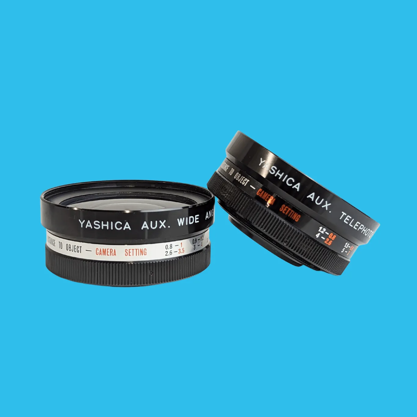 The Yahsica comes with a Yashinon Color 45mm F1.7 Lens with 6 elements in 4 groups for superior sharpness. The Camera also comes equipt with a Wide Angle f1.4 and Telephoto f1.4 Adapter, and a Viewfinder that fitted the accessory shoe and provided field of view for the supplementary lenses.