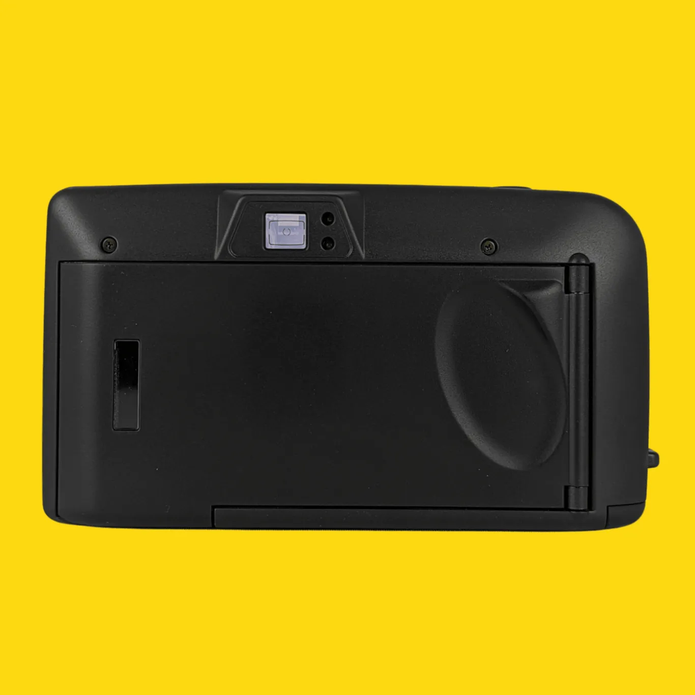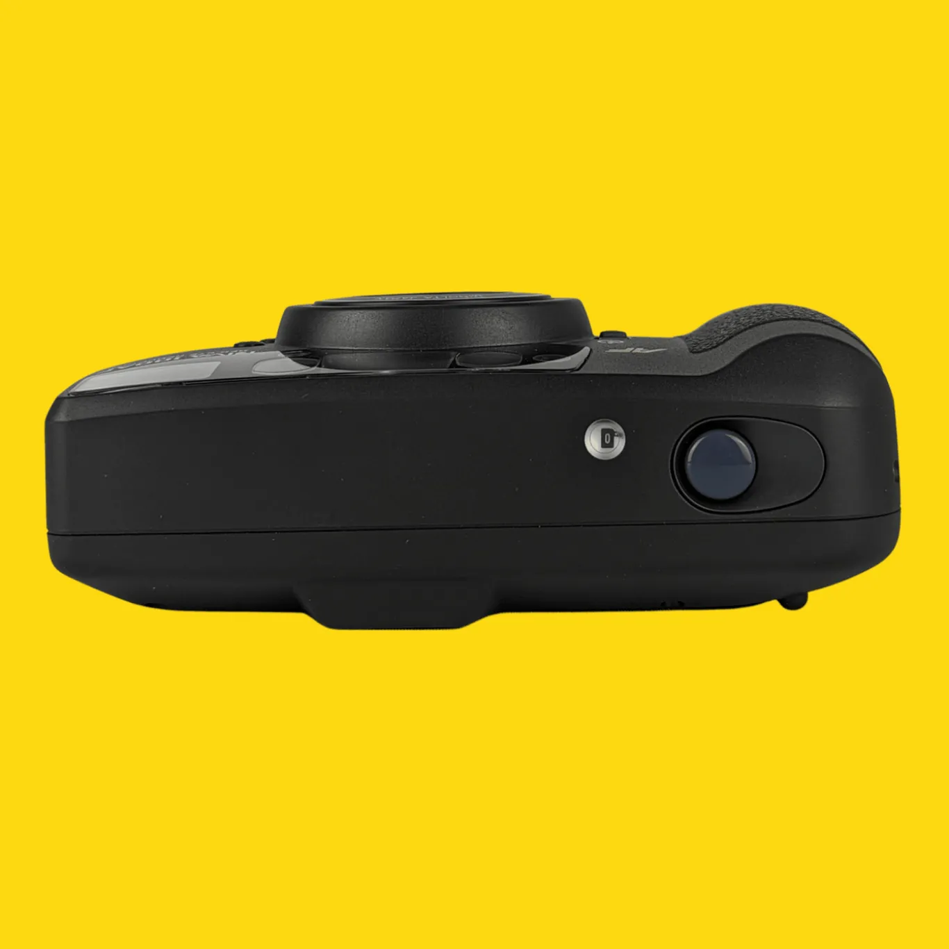 It has a very limited autofocus, working only in two zones, but in addition, there is a “landscape” mode, forcing focus to infinity (13 m onwards). The lens is protected by a sliding cover. A dateback version was also available.