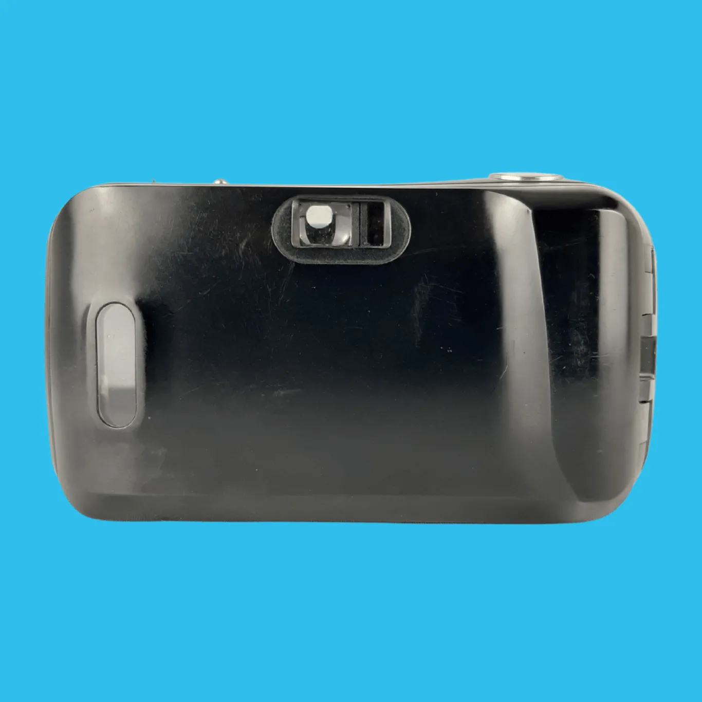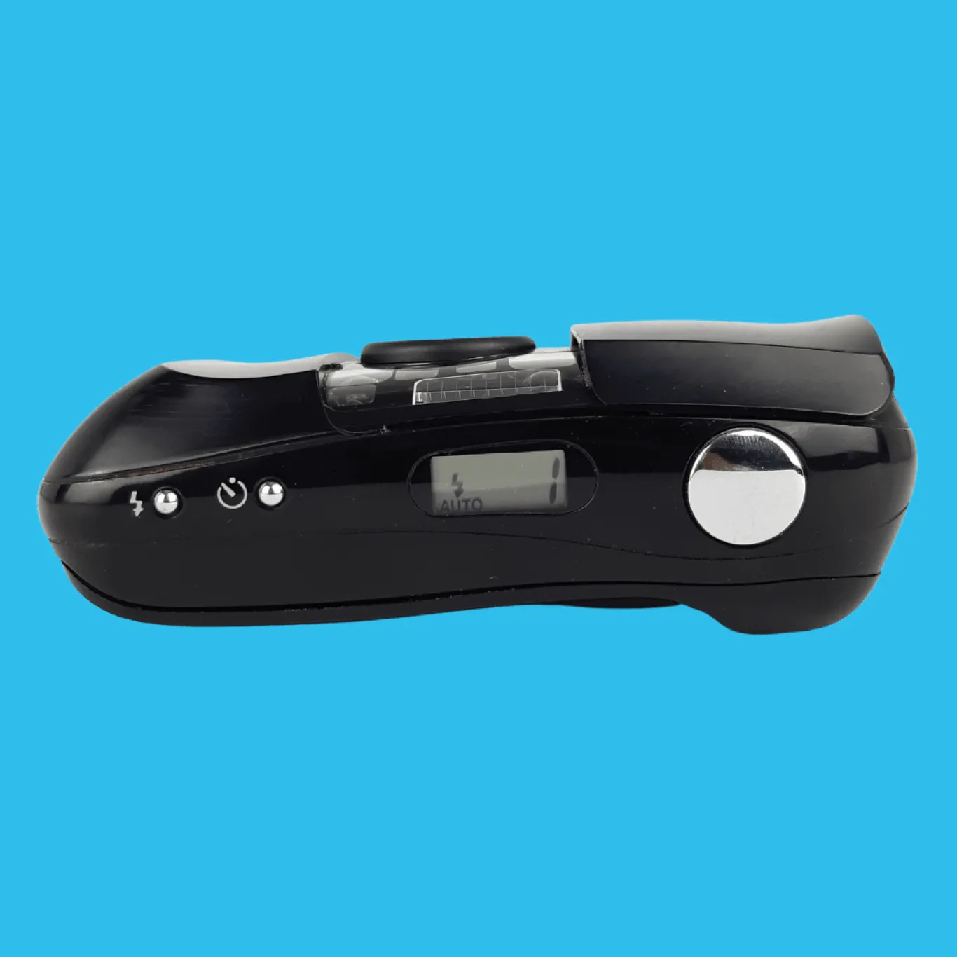 Evolved by camera designer Maitani Yoshihisa from his Olympus XA design, the µ[mju:] was very small and curvy, with an integrated lens cover. It is switched on by shifting the lens cover to one side. The original mju/Stylus was generally available in black, but a LIMITED edition model (50,000 examples) with a metallic silver finish was also released. 1992 saw the release of the Olympus µ[mju:] PANORAMA. This utilised tiny magnets to move a mask in front of the film in the middle of the roll while keeping the body and basic spec unchanged.