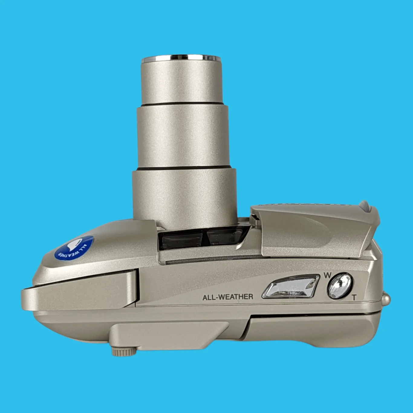 The Olympus Mju III 120 maintains the beautifully streamlined form of the µ series while adding a soft warmth to its design, successfully incorporating a 3.2X zoom lens while achieving a slim, elegant body that is 42mm thin. Its lens block has two double-sided aspherical lenses and one ED ( Extra-low Dispersion ) glass lens to enable sharp, high quality photography. It also offers features like 11-point, multi-wide passive auto-focus ( AF ) to improve focus of off-center subjects to minimise wasted shots and weatherproofing to allow worry-free use even on rainy days, enabling users to enjoy photography with a sense of security.