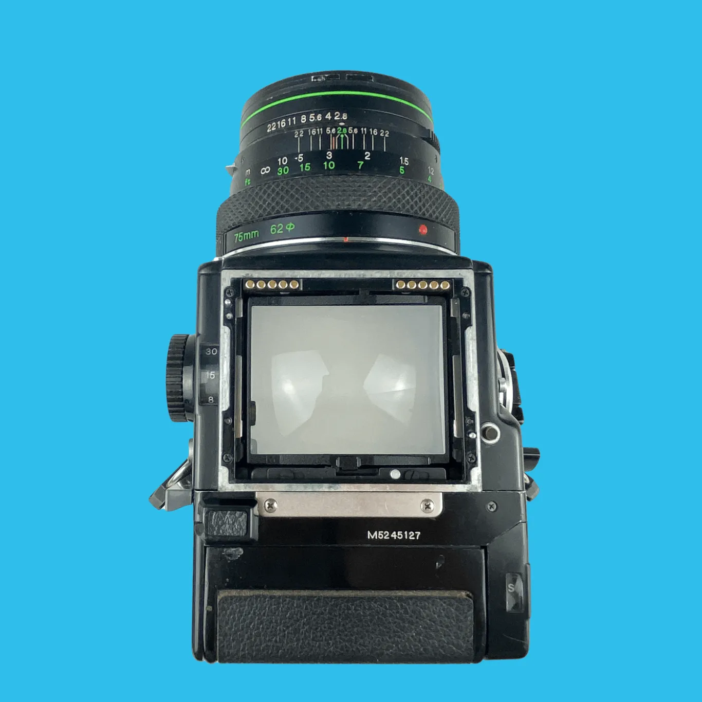 The ETR lens system has a Seiko-manufactured electronic shutter with speeds of 8 seconds to 1/500th of a second. Since it’s a leaf shutter-based camera, the flash sync is available at all speeds. The camera features a modular design allowing for interchangeable lenses, and a film backs system that has the ability to use 120 film or polaroid film backs. Changeable holders make the system more flexible compared to the original M645.
