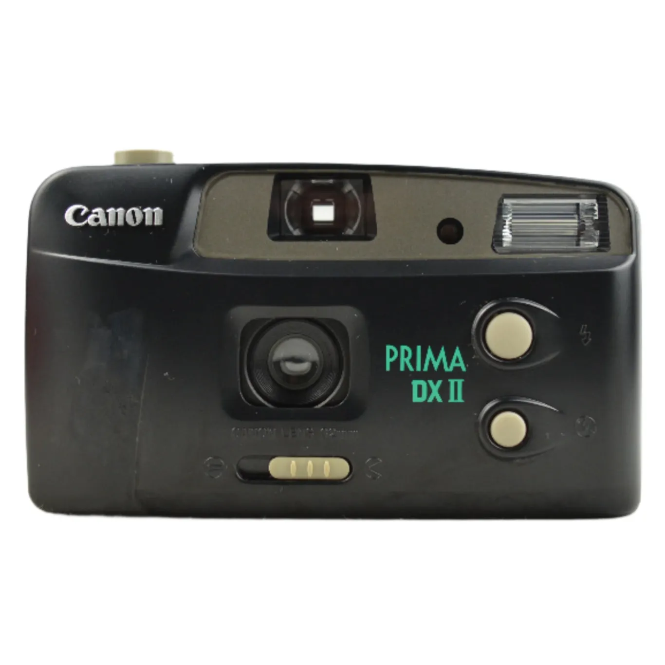 The Canon Prima DX II, also known as the Sure Shot Zoom S in some regions, is a compact 35mm point-and-shoot camera from the mid-1990s, designed for ease of use and everyday photography. It features a sharp 38–60mm zoom lens, allowing flexibility between wide-angle and short telephoto shots. With fully automatic focus, exposure, and built-in flash (including red-eye reduction).