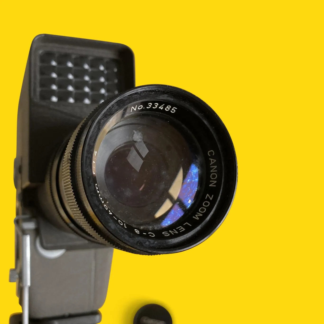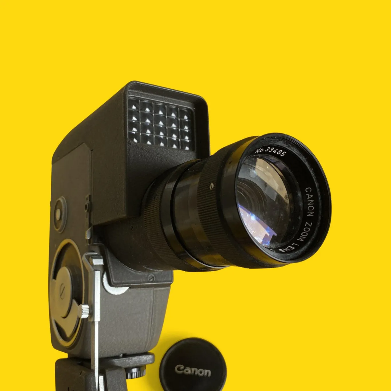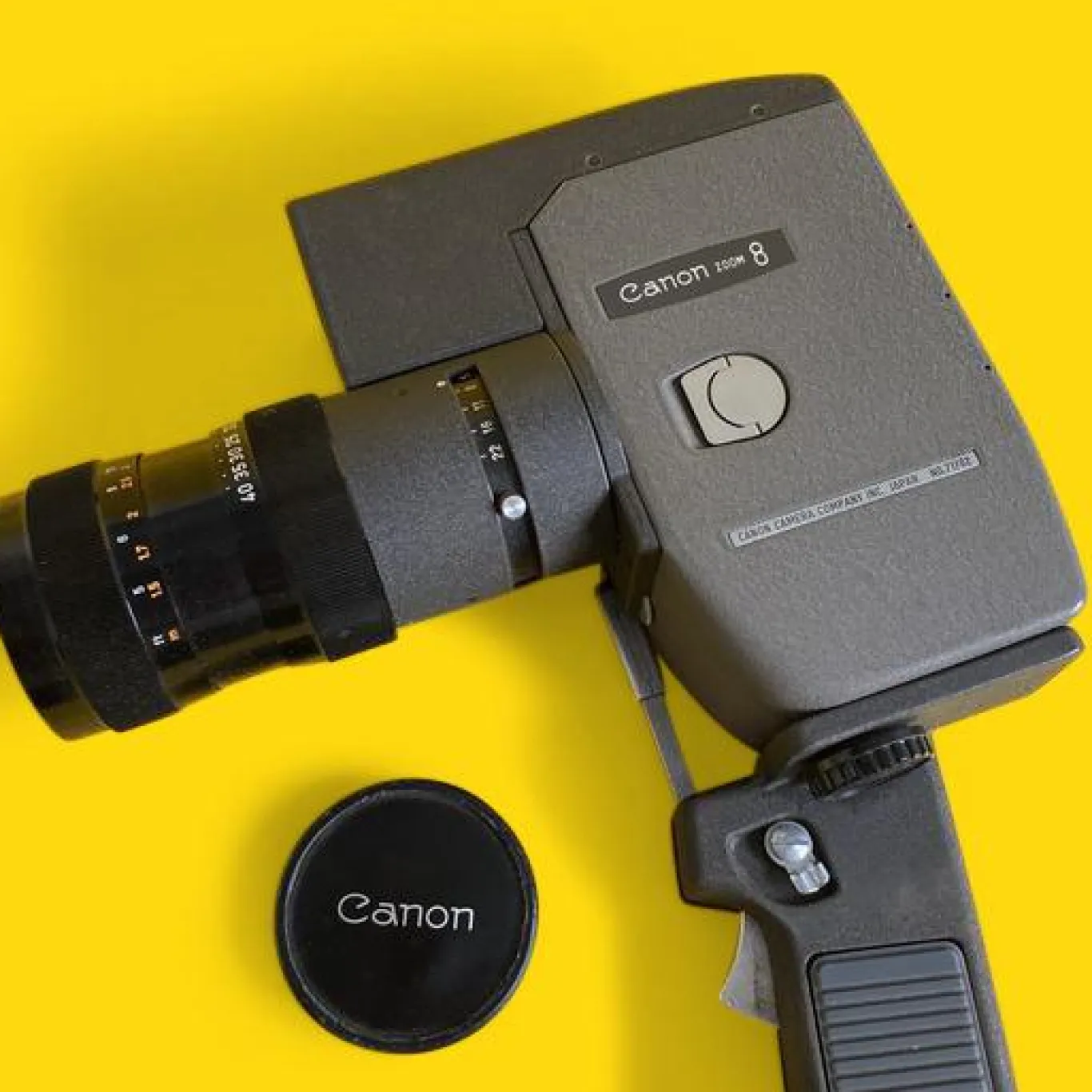 The body of the Zoom 8 was common with the 8-T but the Zoom 8 was equipped with this zoom lens. Although it was based on the 8-T, this camera had a single-lens reflex viewfinder with a split-image rangefinder and electric exposure meter. This was the first Canon movie camera equipped with a zoom lens, and it became very popular. It also had a detachable trigger grip.