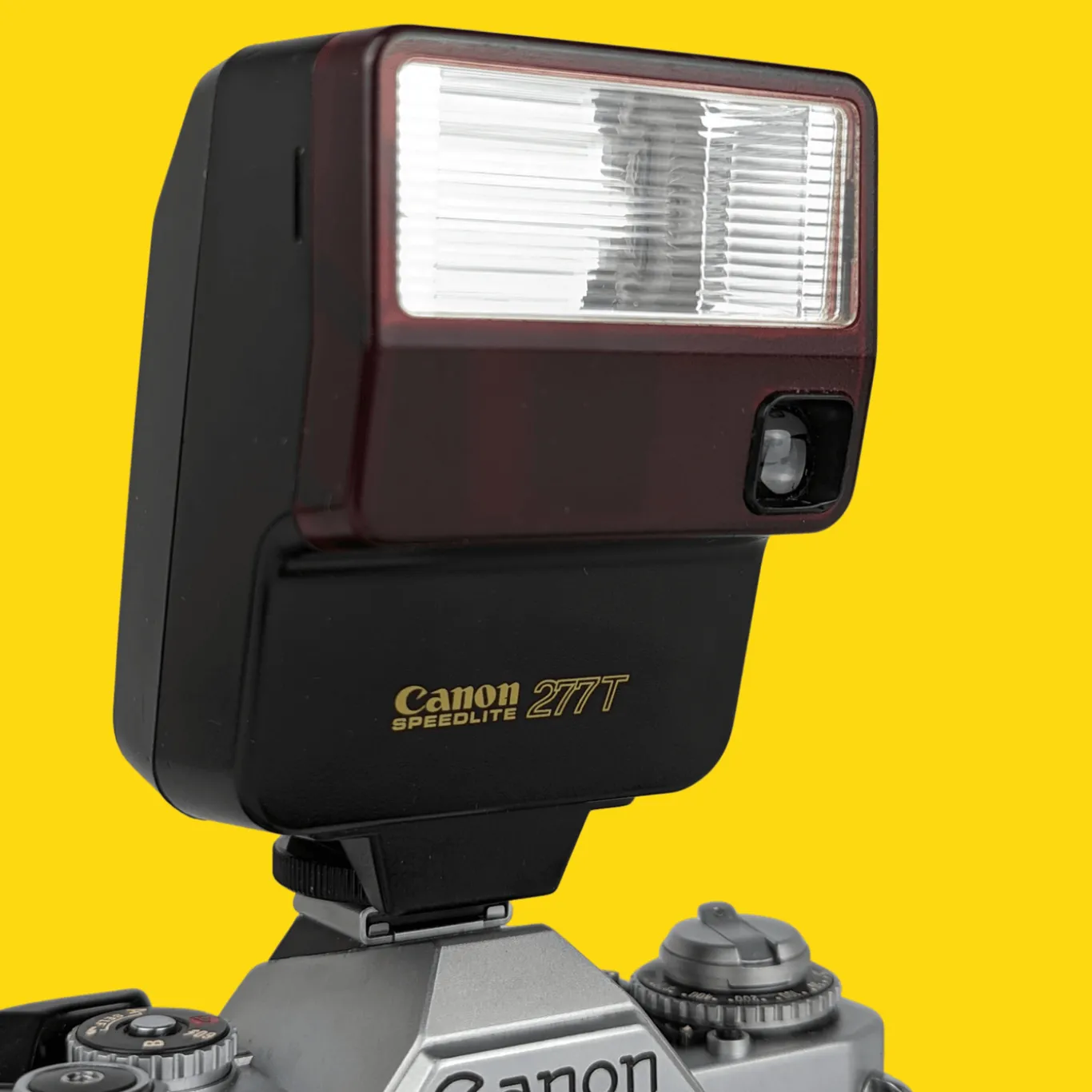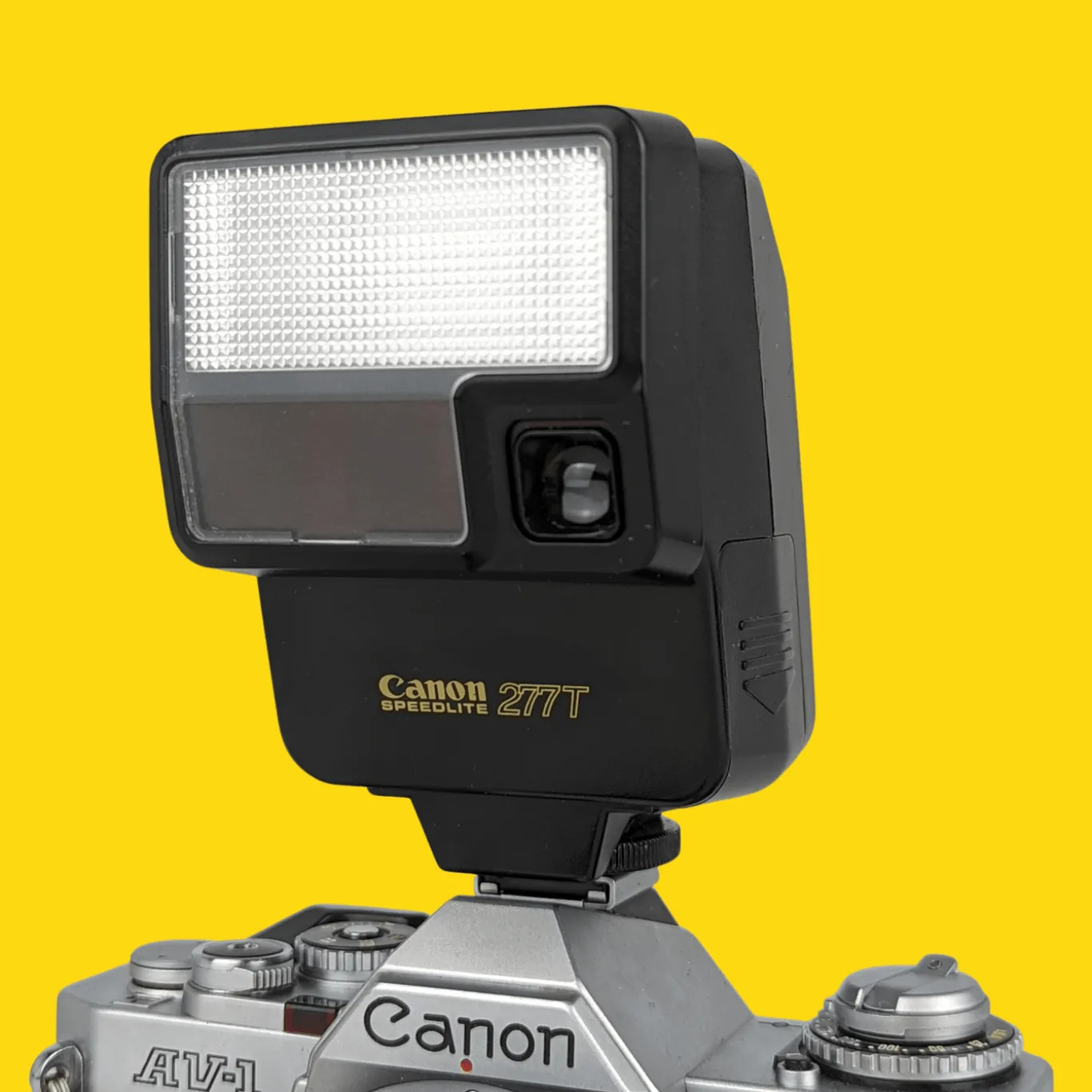 This external flash unit will work on any 35mm film camera that has a hot shoe attachment, the Canon Speedlight 277T external flash has a 3 pin cold shoe for attachment to hot shoes/ cold shoes with 3 pins. To be used in conjunction with a Canon T70 or T50 SLR.
