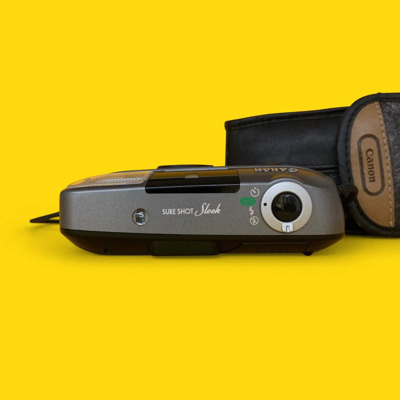 A 1996 model from Canon’s phenomenally successful Sure Shot range, the lightweight compact Sure Shot Sleek, known as the Prima Mini II in continental Europe and Autoboy F XL in Japan was an upgraded version of the Sure Shot M, a compact camera with a wide-angle prime lens. It had a useful dial for flash modes. A slim, lightweight, compact, and even fashionable camera
