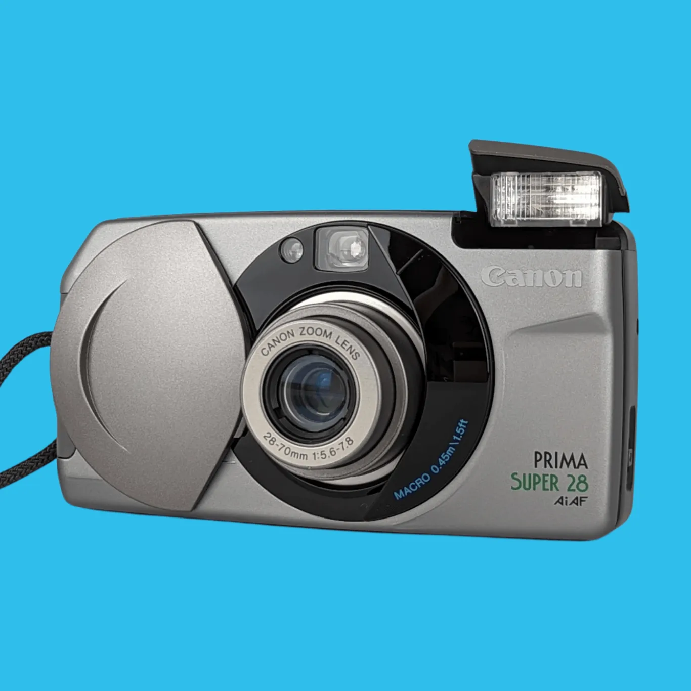 A March 1995 model from Canon’s Sure Shot Series, the Sure Shot Z70W / Prima Super 28 was a compact camera with fully automatic autofocus and a zoom lens. Some versions had CAPTION imprinting capability. There was no Japanese edition, as this was a cut-down version of the Autoboy Luna.