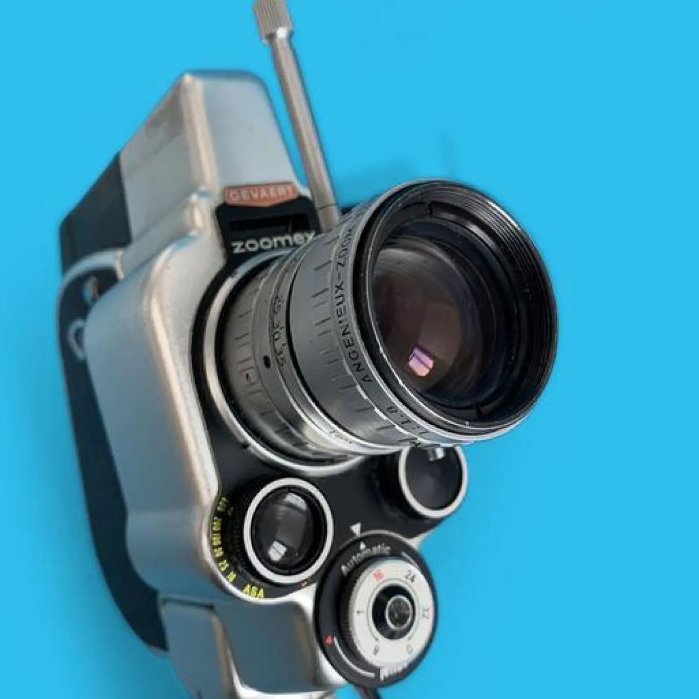In 1961, Carena SA equipped its 2×8 Automatic camera with an Angenieux K2 zoom lens and thus launched the Zoomex . In 1962 he adapted his fast film loading system to it. It then took the name of Zoomex II . This model can also be equipped with an Angenieux 9-30mm zoom or an optional Schneider Variogon. In 1964 will be equipped with a Zoom Angénieux 6.5-52mm and will be called Zoomex S.