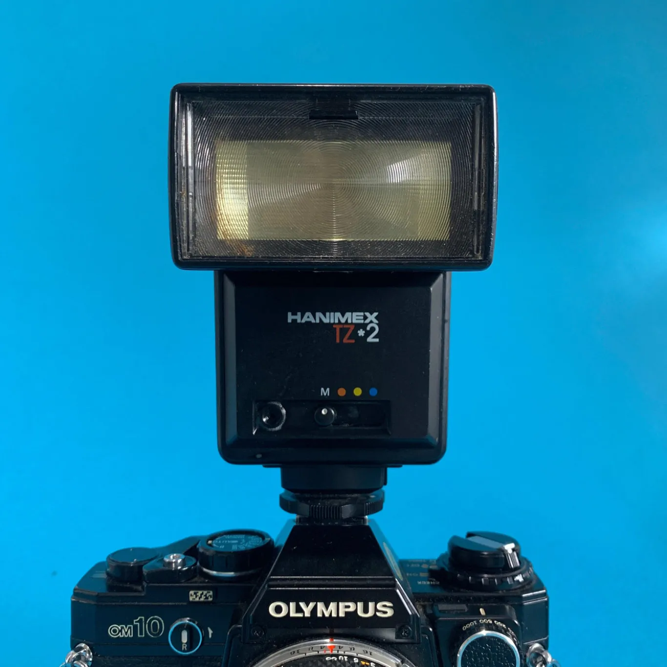 This external flash unit will work on any 35mm film camera that has a hot shoe attachment. It is worth checking your user manual on how to use the flash, but the standard way is to pop it on the hot shoe attachment, wait for it to charge (you’ll hear a little whine whilst its powering up), set your camera to flash mode and when you shoot, the flash flashes! Excellent used condition.