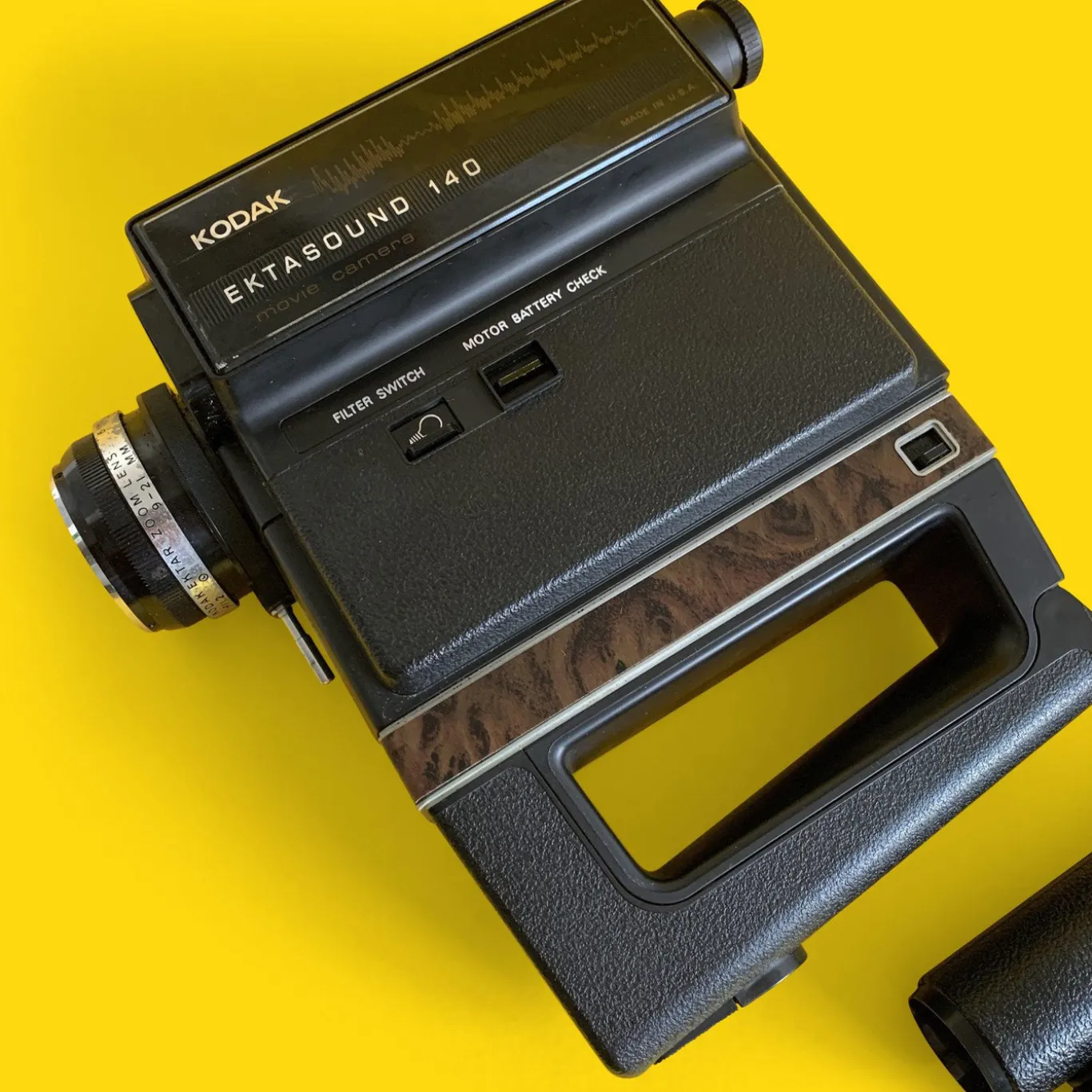 The Kodak Super 8 Ektasound 140 camera is designed to simultaneously record sound with pictures using magnetically-striped Super 8 Ektachrome film. The introduction of the Super 8 format offering lip-synchronised dialogue opened up the world of sound for the home movie-maker.