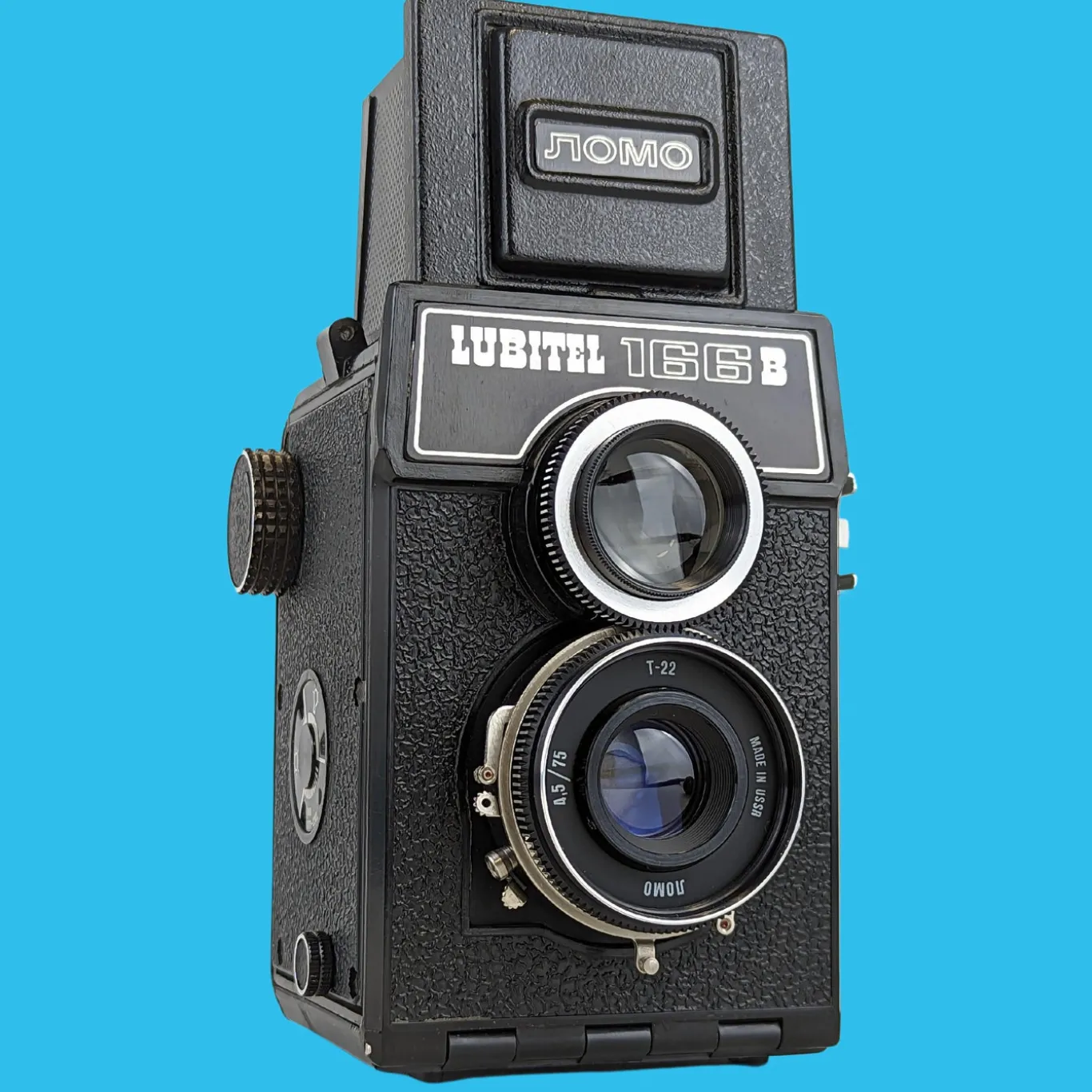 Lomo made this plastic-bodied Twin lens reflex medium format camera beginning circa 1980. It was a minor revision to the 1976 Lubitel 166, adding a self-timer.