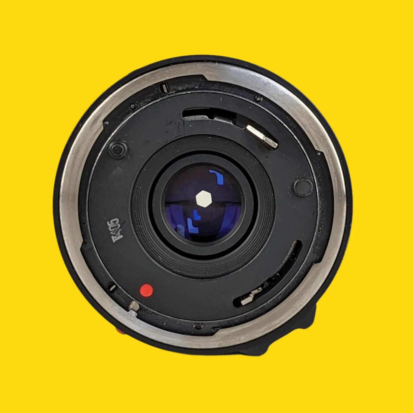 The lens elements are clear with just a few minor dust specs (no haze or fungus). The focusing operation works smoothly, plus all the apertures are selectable. This lens will fit on an Canon SLR with a FD mount