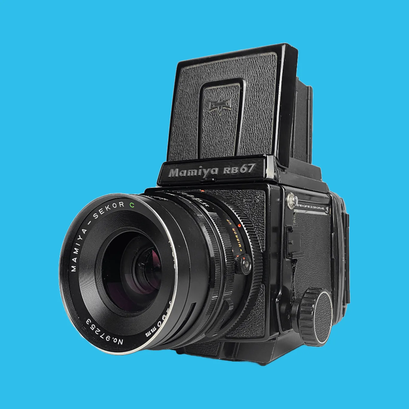 The Mamiya RB 67 ProS was released in 1974 as professional medium format single-lens-reflex system camera by Mamiya Corp.