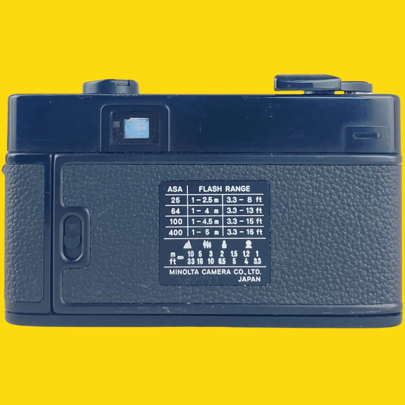 The Minolta Hi-Matic AF is a rangefinder compact camera and is one of the first entries in a long line of “Hi-Matic” cameras produced by Minolta. From the early-1960s, the Hi-Matic line comprised a number of small rangefinders with lots of automation and a normal lens. The Hi-Matic AF (1979) being one of the first with a automatic focus, as well as automatic shutter speed. However you can still manually change the iso.