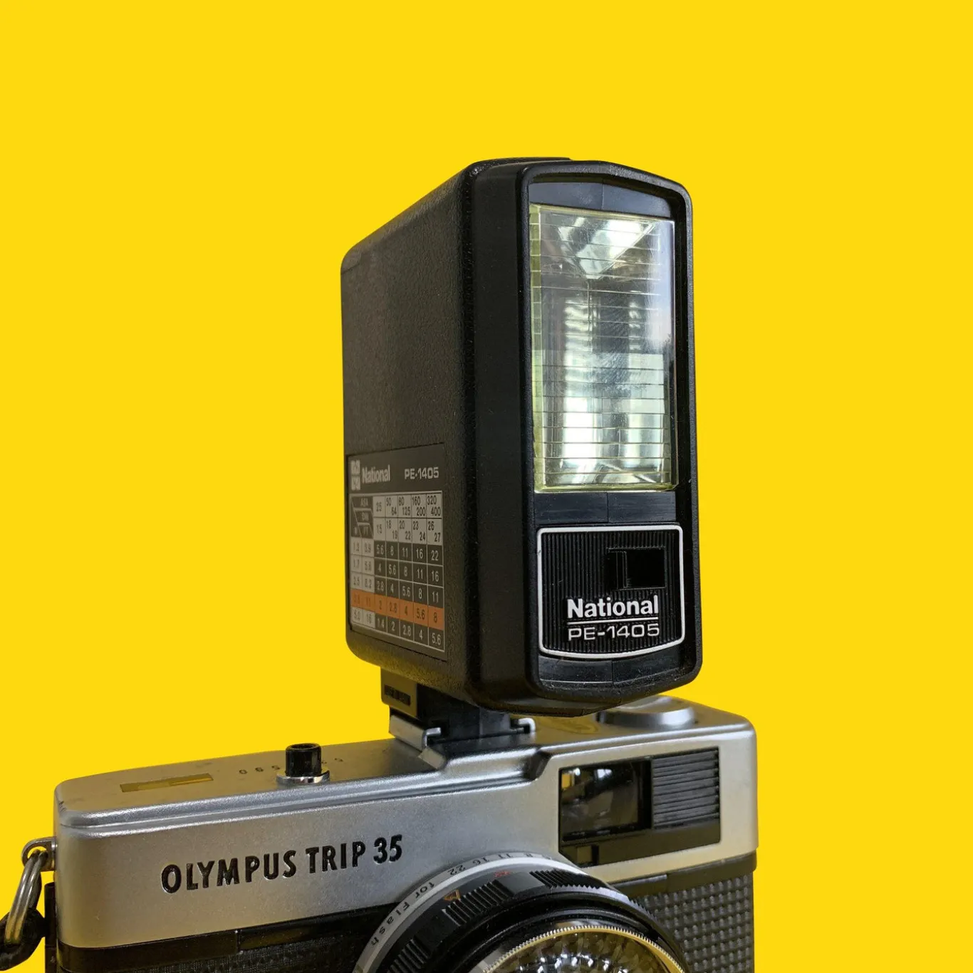 This external flash unit will work on any 35mm film camera that has a hot shoe attachment. It is worth checking your user manual on how to use the flash, but the standard way is to pop it on the hot shoe attachment, wait for it to charge (you’ll hear a little whine whilst its powering up), set your camera to flash mode and when you shoot, the flash flashes! Excellent used condition.