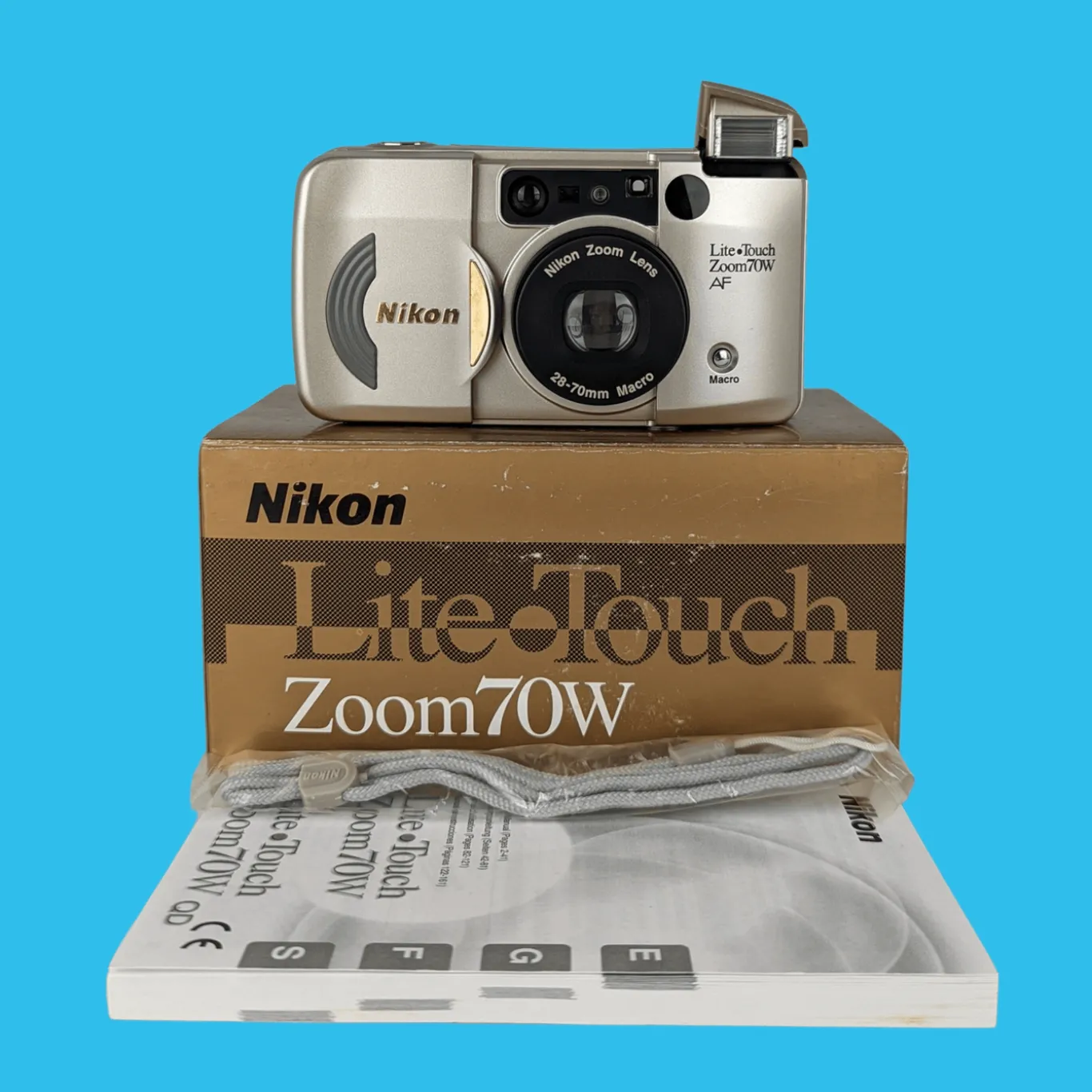 The Camera was part of the Nikon Zoom series and was superseded by the very similar Nikon Lite Touch Zoom 70WS in 2002. a fully automatic point and shoot camera with a little zoom lens and a built-in flash. This one is especially easy to use and it can either do everything for you or you can change the flash settings using the screen and buttons on the top of the camera.