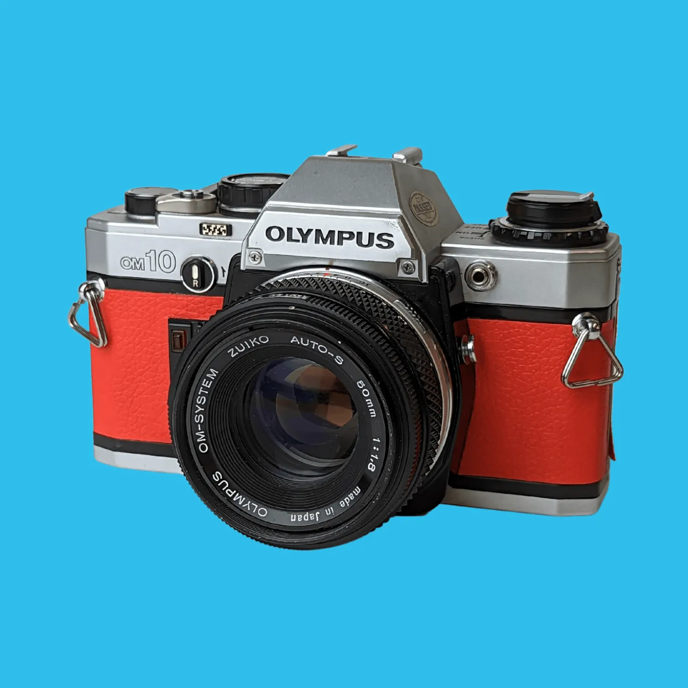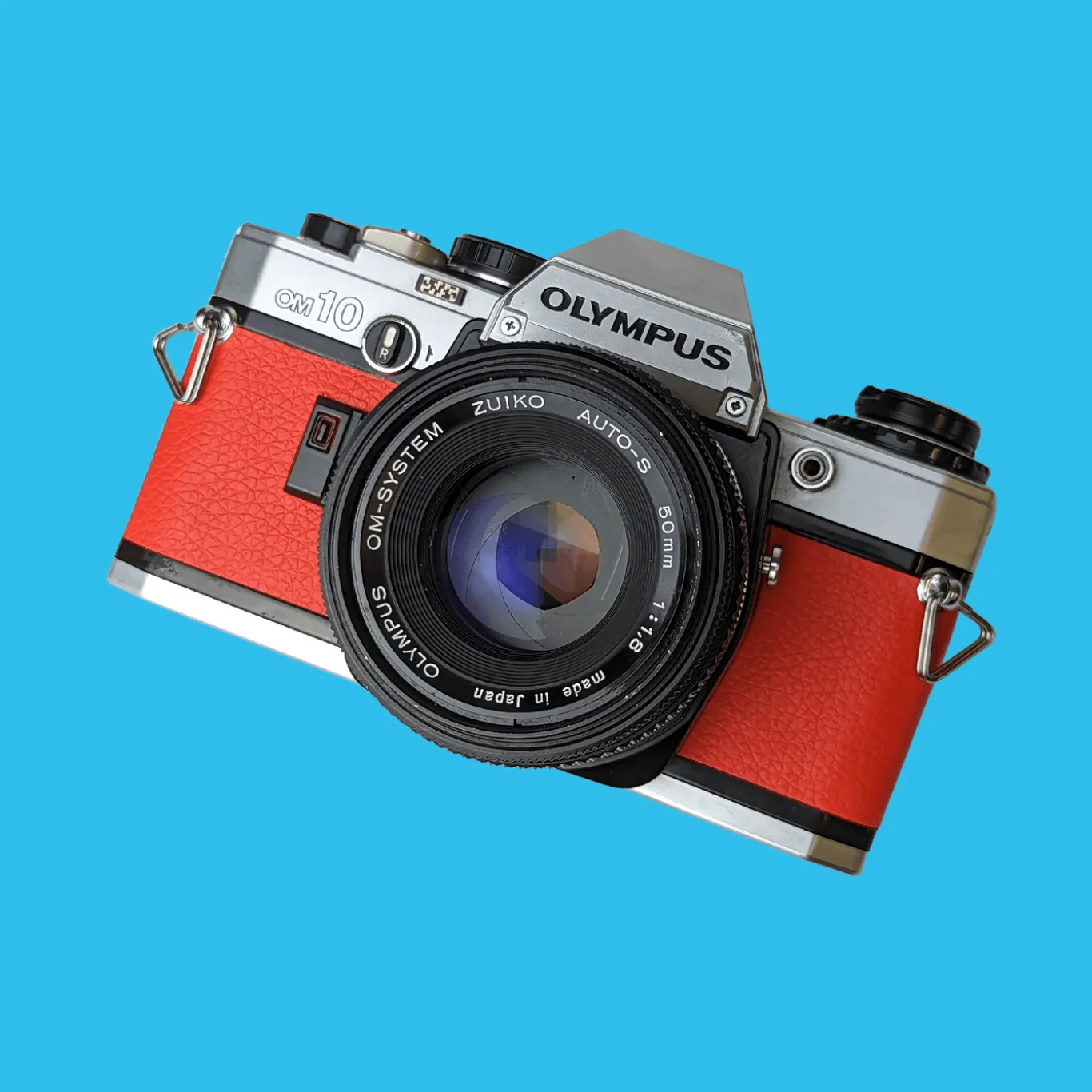 Olympus OM10 Red Leather Vintage 35mm Film Camera w/ F/1.8 50mm Lens