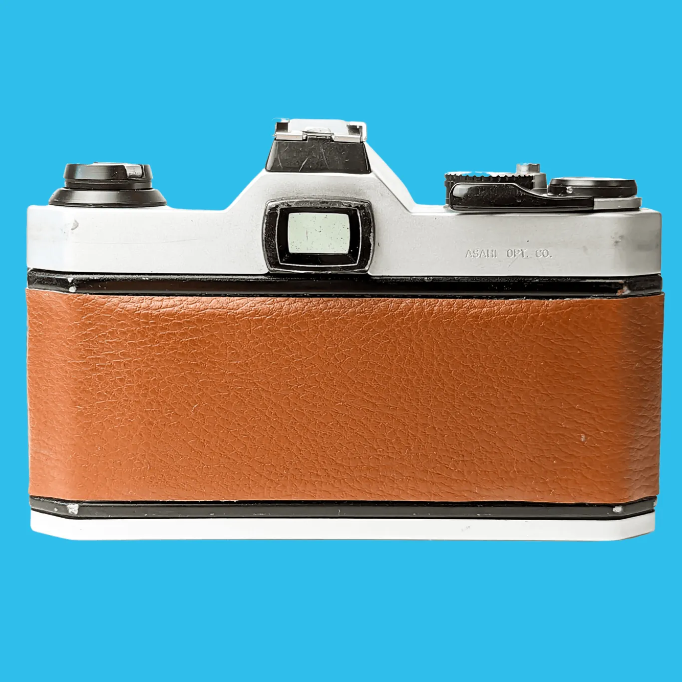 Pentax K1000 Brown Leather Vintage SLR 35mm Film Camera with Pentax f/2 50mm Prime Lens.
