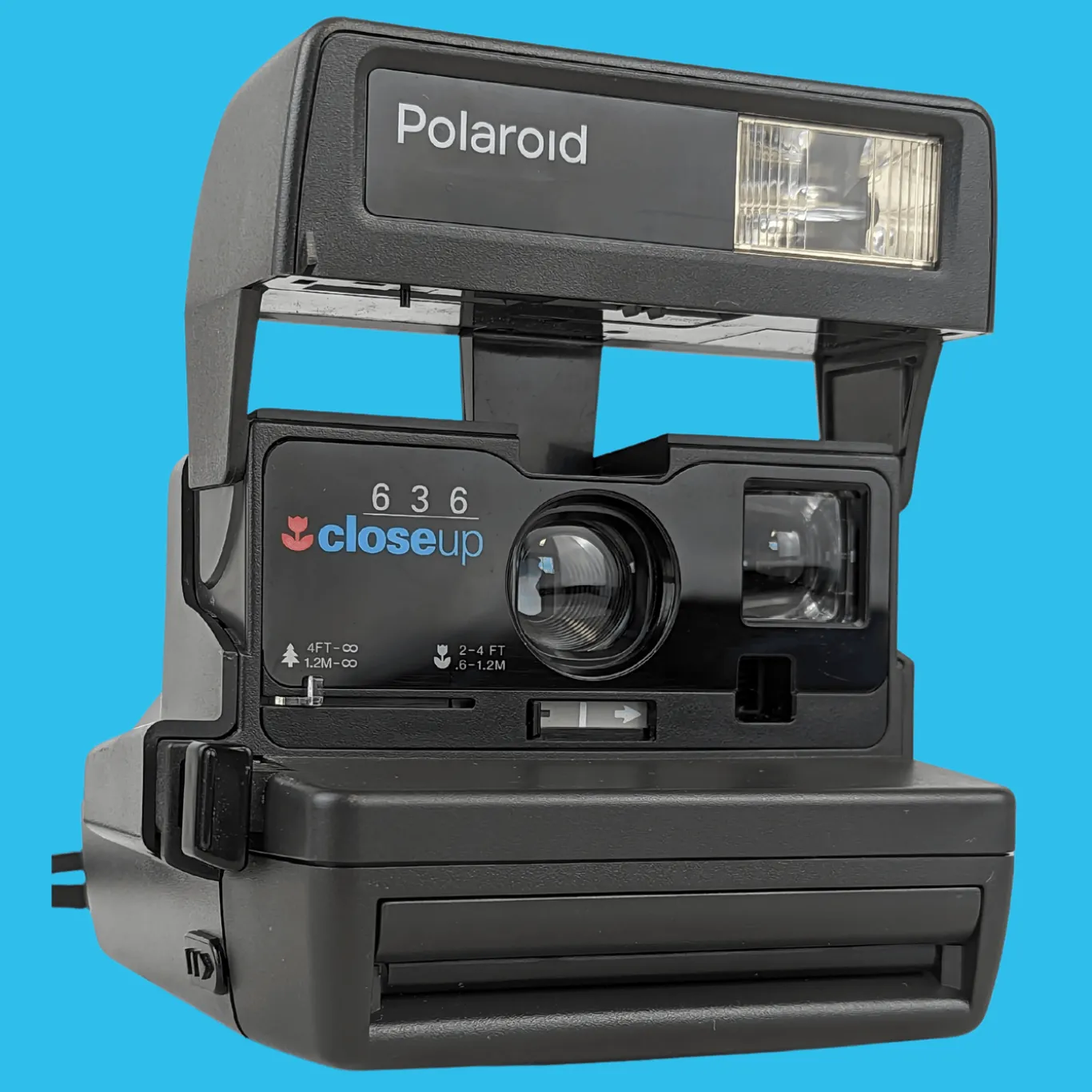 The Polaroid 636 Closeup is an instant camera. The functions are identical to the Polaroid One Step (rounded corners). It is designed for the 600 format of the American company. The Polaroid 636 Closeup is very easy to use. You don’t need a manual to press the shutter button, the camera takes care of the rest.