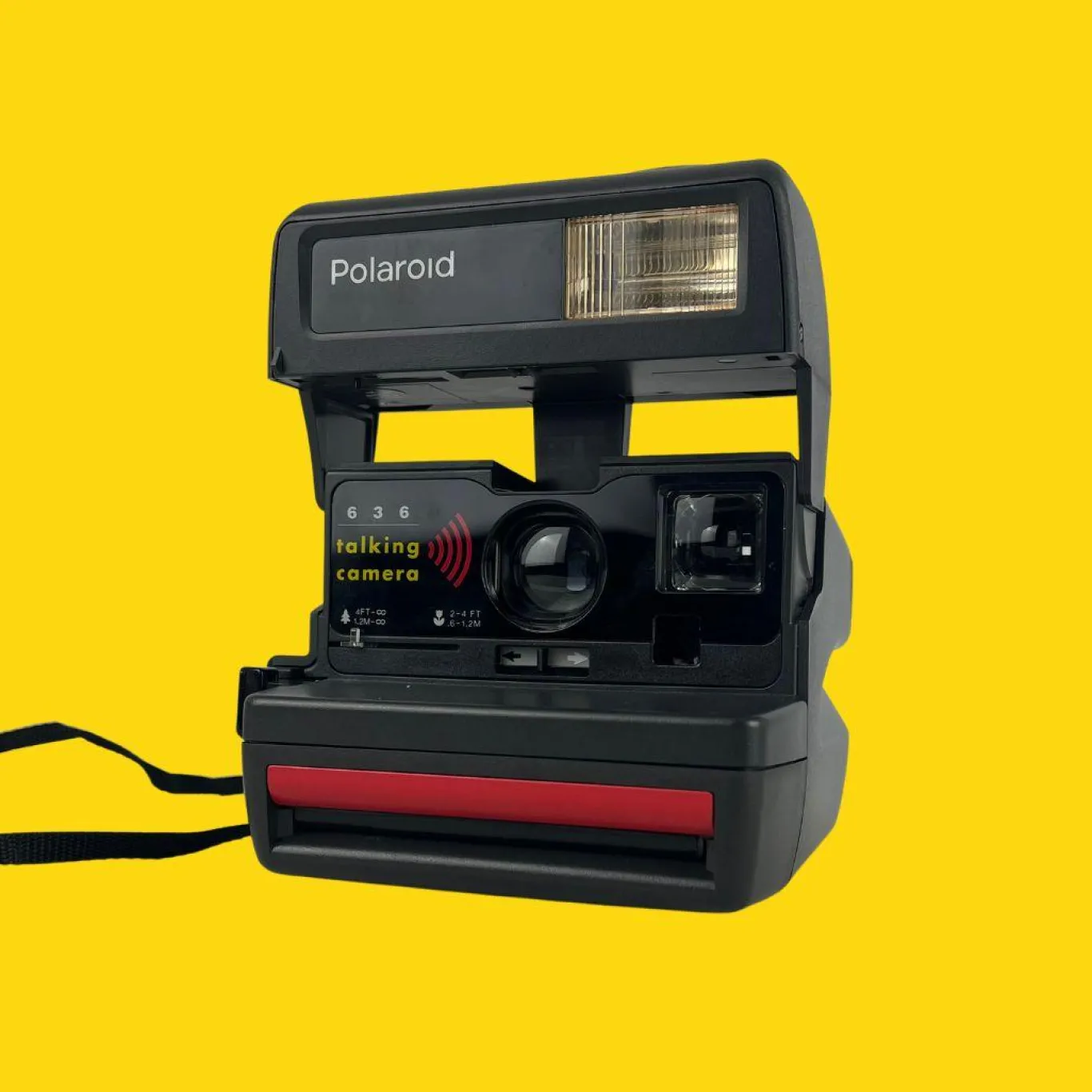 The Polaroid Talking Camera 636 is an instant camera. The functions are identical to the Polaroid One Step (rounded corners). It is designed for the 600 format of the American company. The Polaroid is very easy to use. You don’t need a manual to press the shutter button, the camera takes care of the rest.