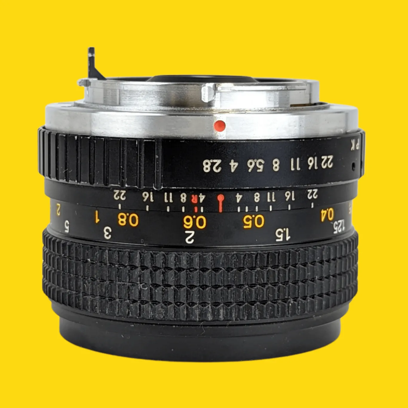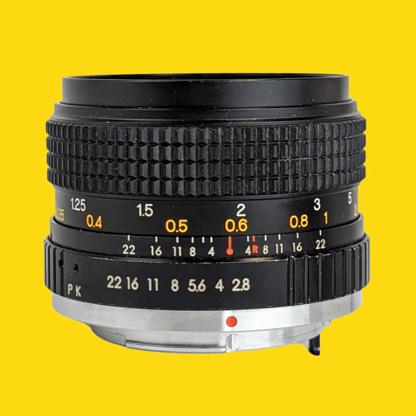 The lens elements are clear with just a few minor dust specs (no haze or fungus). The focusing operation works smoothly, plus all the apertures are selectable. This lens will fit on an Pentax SLR with a PK mount