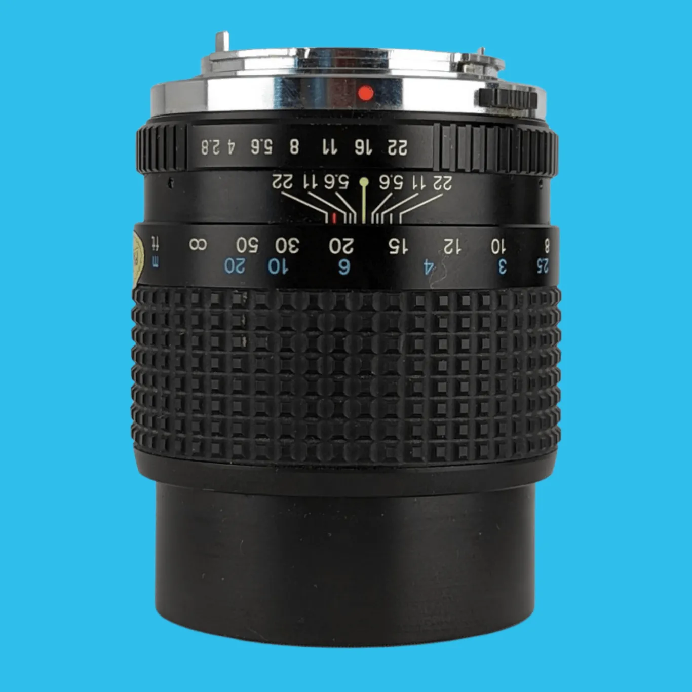 The lens elements are clear with just a few minor dust specs (no haze or fungus). The focusing operation works smoothly, plus all the apertures are selectable. This lens will fit on a Olympus SLR camera.