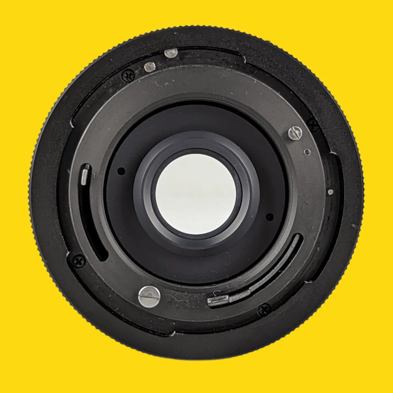 The lens elements are clear with just a few minor dust specs (no haze or fungus). The focusing operation works smoothly, plus all the apertures are selectable. This lens will fit on an Canon with an FD mount.