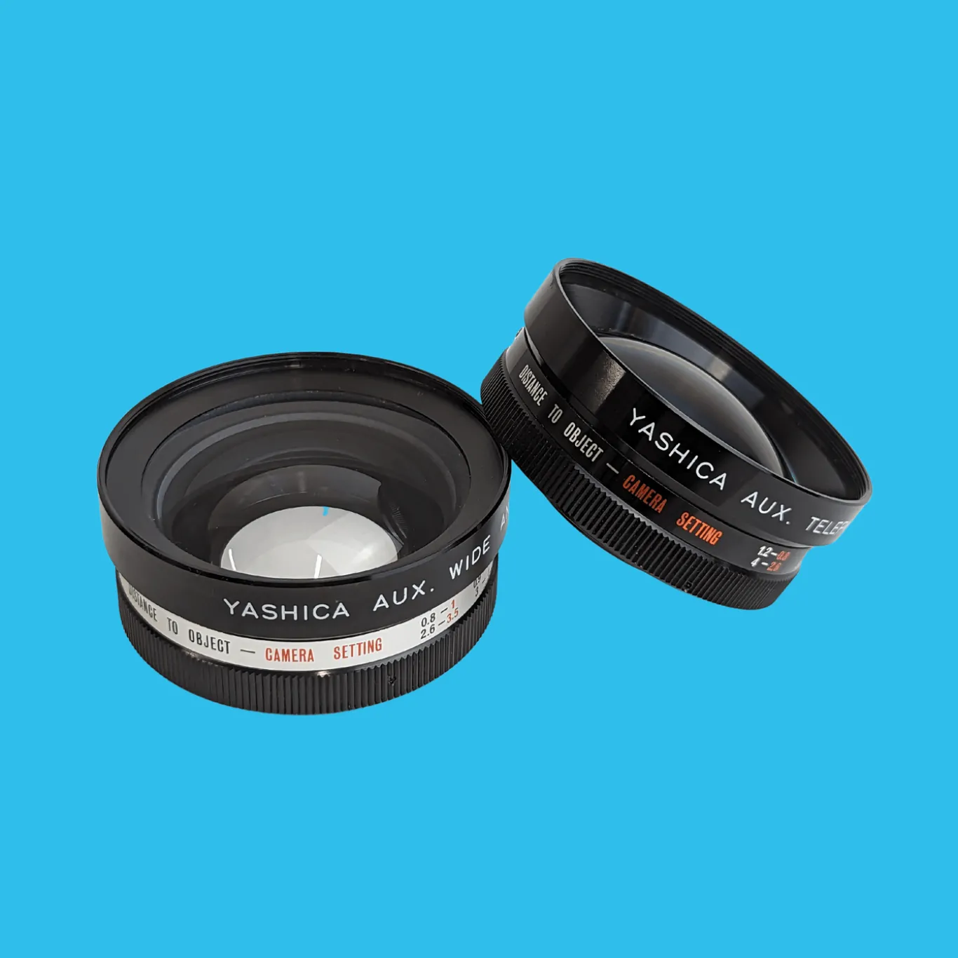 The Yahsica comes with a Yashinon Color 45mm F1.7 Lens with 6 elements in 4 groups for superior sharpness. The Camera also comes equipt with a Wide Angle f1.4 and Telephoto f1.4 Adapter, and a Viewfinder that fitted the accessory shoe and provided field of view for the supplementary lenses.